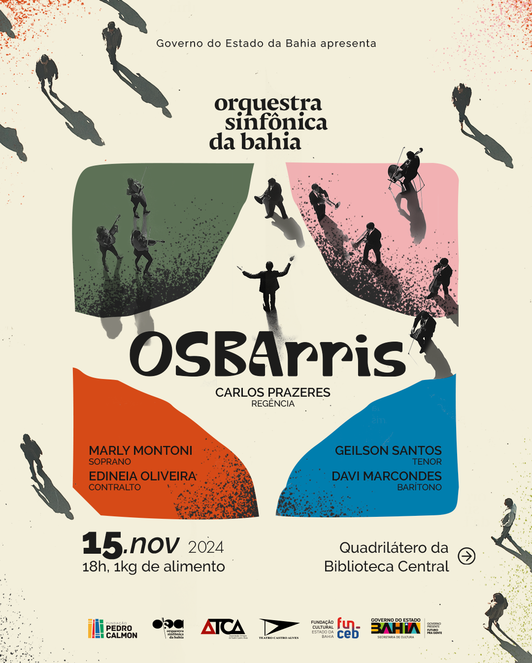 Sob a regência do maestro Carlos Prazeres, esta edição do OSBArris contará com solistas de destaque do canto lírico nacional: a soprano paulista Marly Montoni, a mezzo-soprano mineira Edineia Oliveira, o tenor carioca Geilson Santos e o barítono mineiro David Marcondes. A entrada será feita pela doação de um quilo de alimento não perecível para o programa Bahia Sem Fome, com acesso sujeito à lotação do espaço.