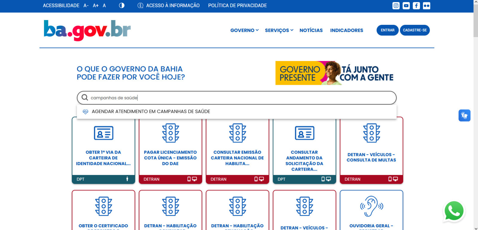 1 - Acesse o portal ou o aplicativo http://ba.gov.br informando seus dados de acesso (CPF e senha);