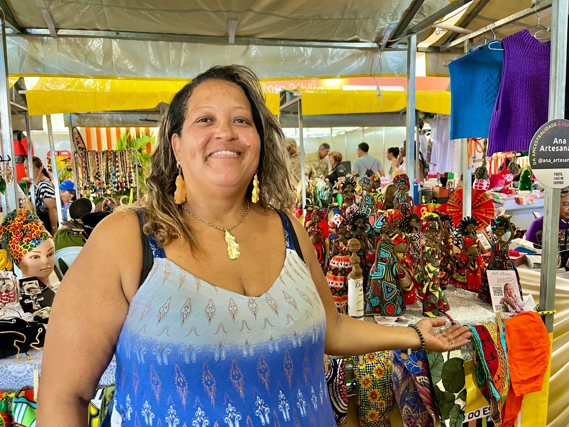Já Juvanete Viana, empreendedora quilombola da comunidade da Bacia Vale do Iguape, Quilombo Kaonge, da cidade de Cachoeira, celebra a chance de representar sua cultura por meio da moda afro. “É uma honra poder mostrar os produtos e a força das mulheres quilombolas. Esse espaço nos empodera e conecta nossas comunidades ao público”, destacou.