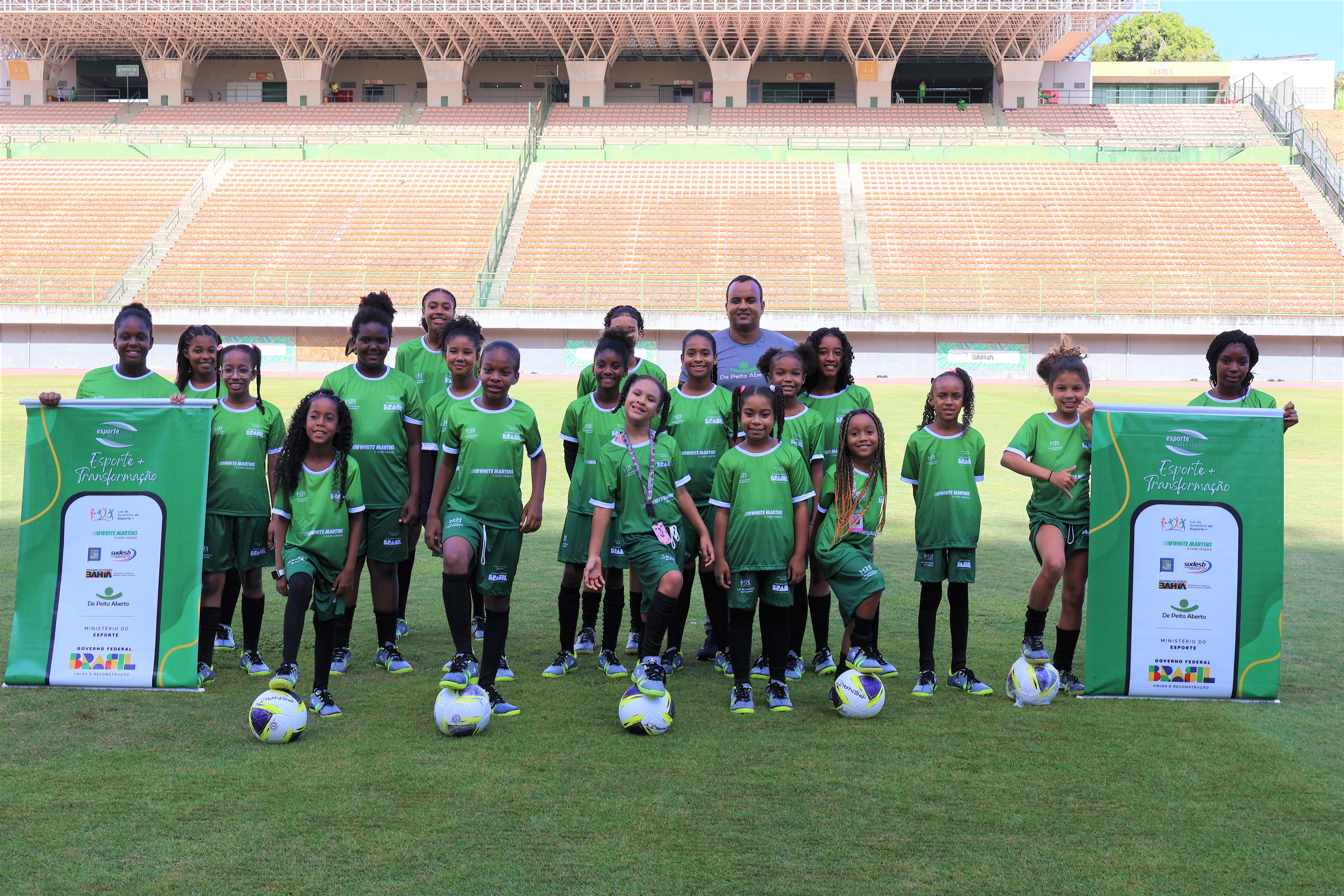 Realizado pela De Peito Aberto, por meio da Lei Federal de Incentivo ao Esporte, o Projeto Esporte na Cidade conta com o patrocínio da Livelo e da White Martins e apoio da Sudesb. A iniciativa realiza, gratuitamente, aulas de futebol feminino para meninas entre 7 e 17 anos de idade. Realizado desde 2019 no Estádio Pituaçu, a iniciativa já atendeu mais de 500 meninas no local.