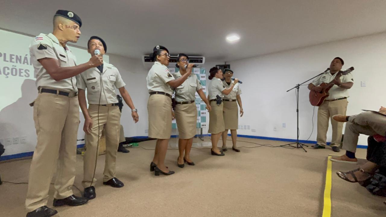 O início dos trabalhos foi marcado por uma apresentação do Coro Sinfônico da Polícia Militar da Bahia, seguida pelas falas dos membros que compuseram a mesa de abertura do evento.