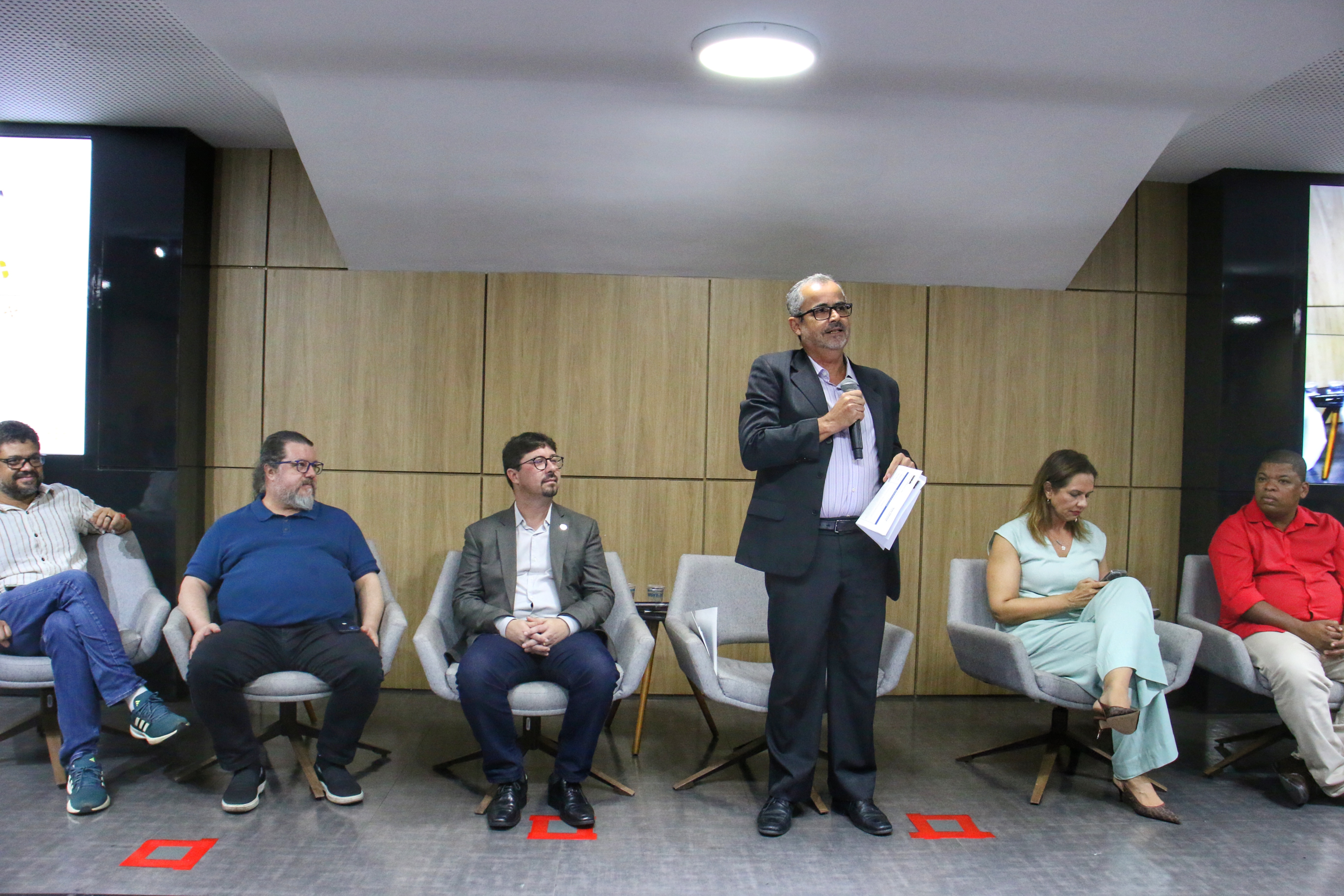 Integraram a mesa de abertura o subsecretário da Saúde do Estado, Paulo Barbosa; a superintendente da Superh, Janaína Peralta; o editor geral da RBSP, Hêider Pinto; o diretor geral da Editora Rede Unida, Alcindo Antônio Ferla; o secretário de Atenção Primária à Saúde do Ministério da Saúde, Felipe Proenço; e o presidente do Conselho Estadual de Saúde (CES), Marcos Gêmeos.