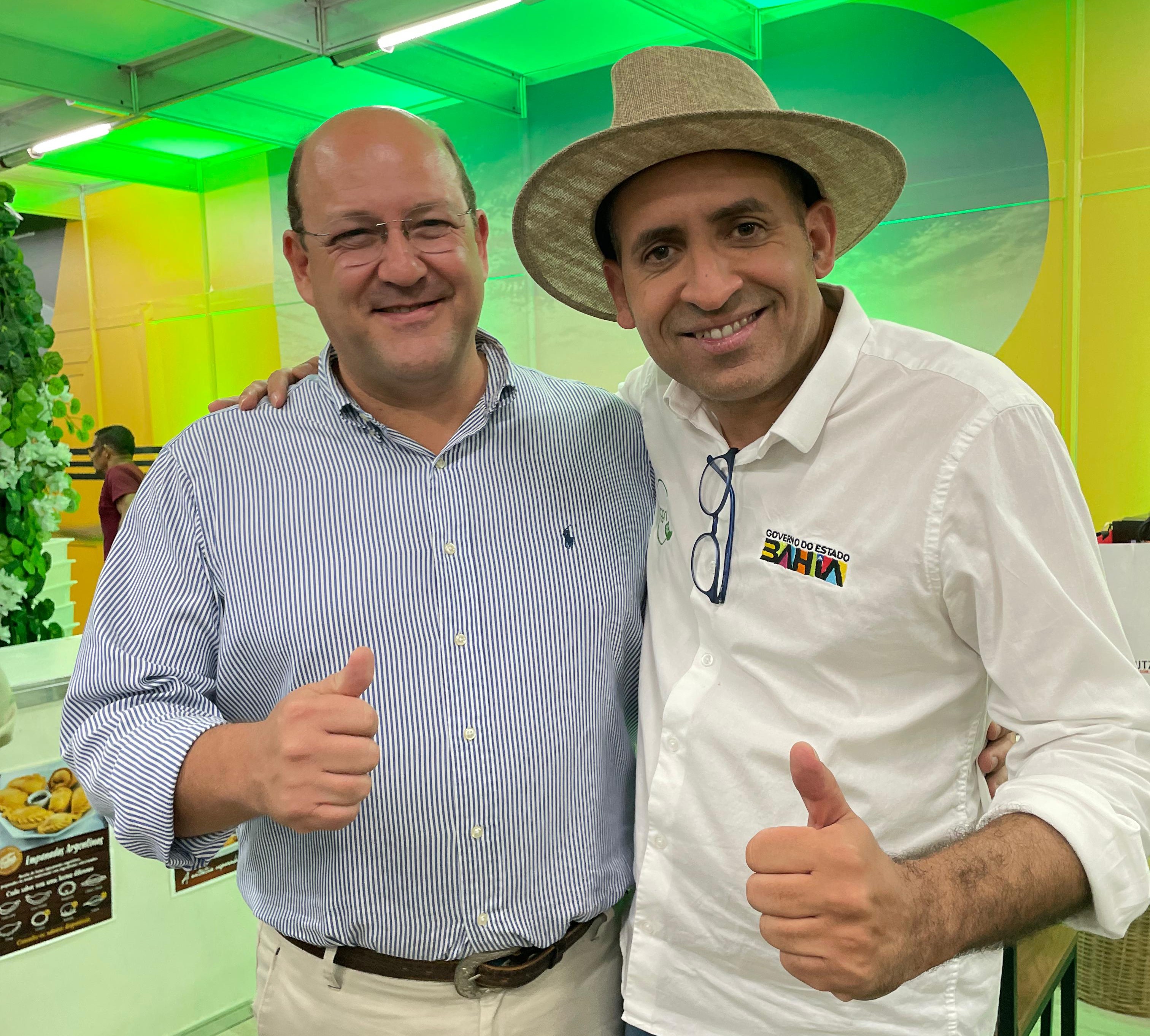 A 33ª edição da Feira Nacional da Agropecuária (Fenagro), realizada pelo Grupo A Tarde com o apoio do Governo do Estado, foi palco de um importante encontro entre dois dos secretários da agricultura dos estados que compõem o Sealba. O secretário da agricultura, desenvolvimento agrário e da pesca de Sergipe, Zeca Ramos da Silva, foi recebido peloaquicukl secretário da agricultura da Bahia, Wallison Tum, em visita institucional à feira. A titular da Seagri de Alagoas, Aline Rodrigues, precisou cancelar de última hora a visita, por motivo de força maior.