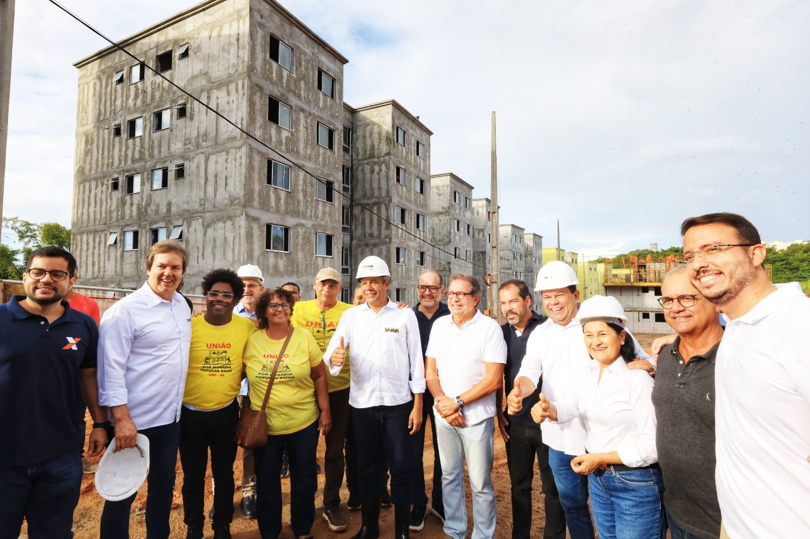 O governador Jerônimo Rodrigues acompanhado do ministro da Casa Civil, Rui Costa, do vice-governador Geraldo Júnior, e outras autoridades, visitou, neste domingo (30), o Residencial Zulmira Barros, localizado na Fazenda Grande IV, em Salvador. O empreendimento, composto por 11 blocos e 300 Unidades Habitacionais, vinculado ao Programa Minha Casa Minha Vida – Entidades (PMCMV-E), já está com aproximadamente 60% das obras concluídas e tem previsão de ser finalizado até dezembro de 2025.
