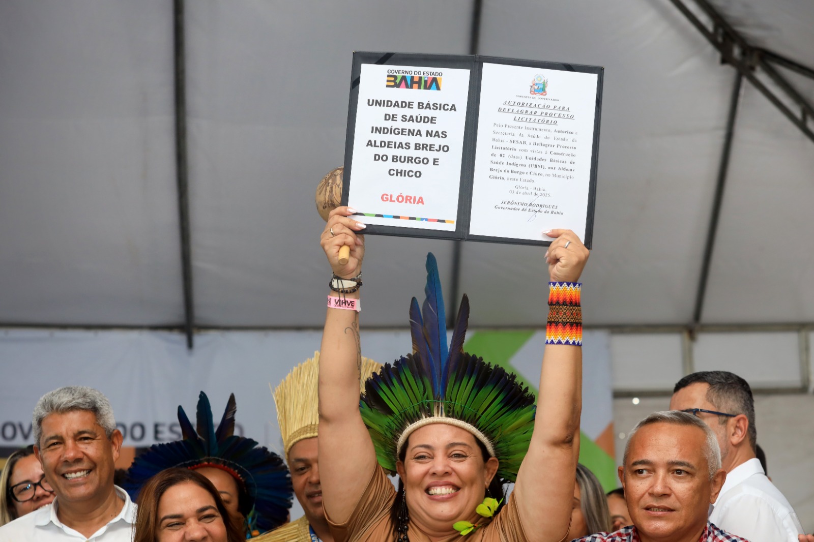 Jerônimo também assinou ordem de serviço para construção de sistemas simplificados de abastecimento de água, em três aldeias indígenas: Kantaruré Baixa do Chico, Pankararé Amaro e Brejo do Burgo.