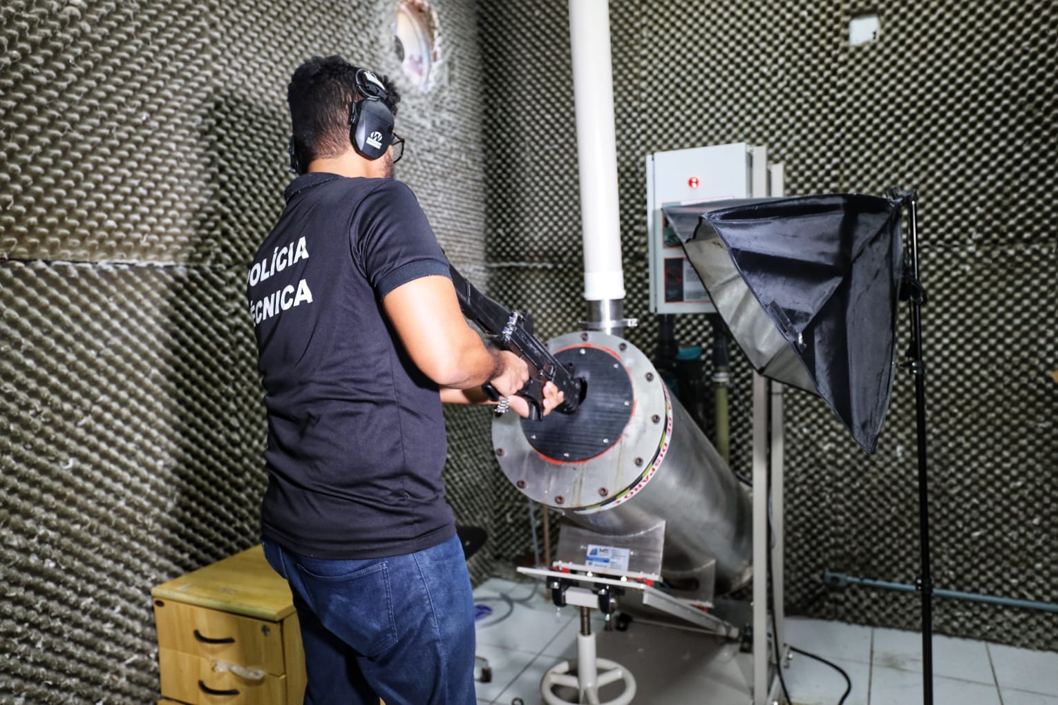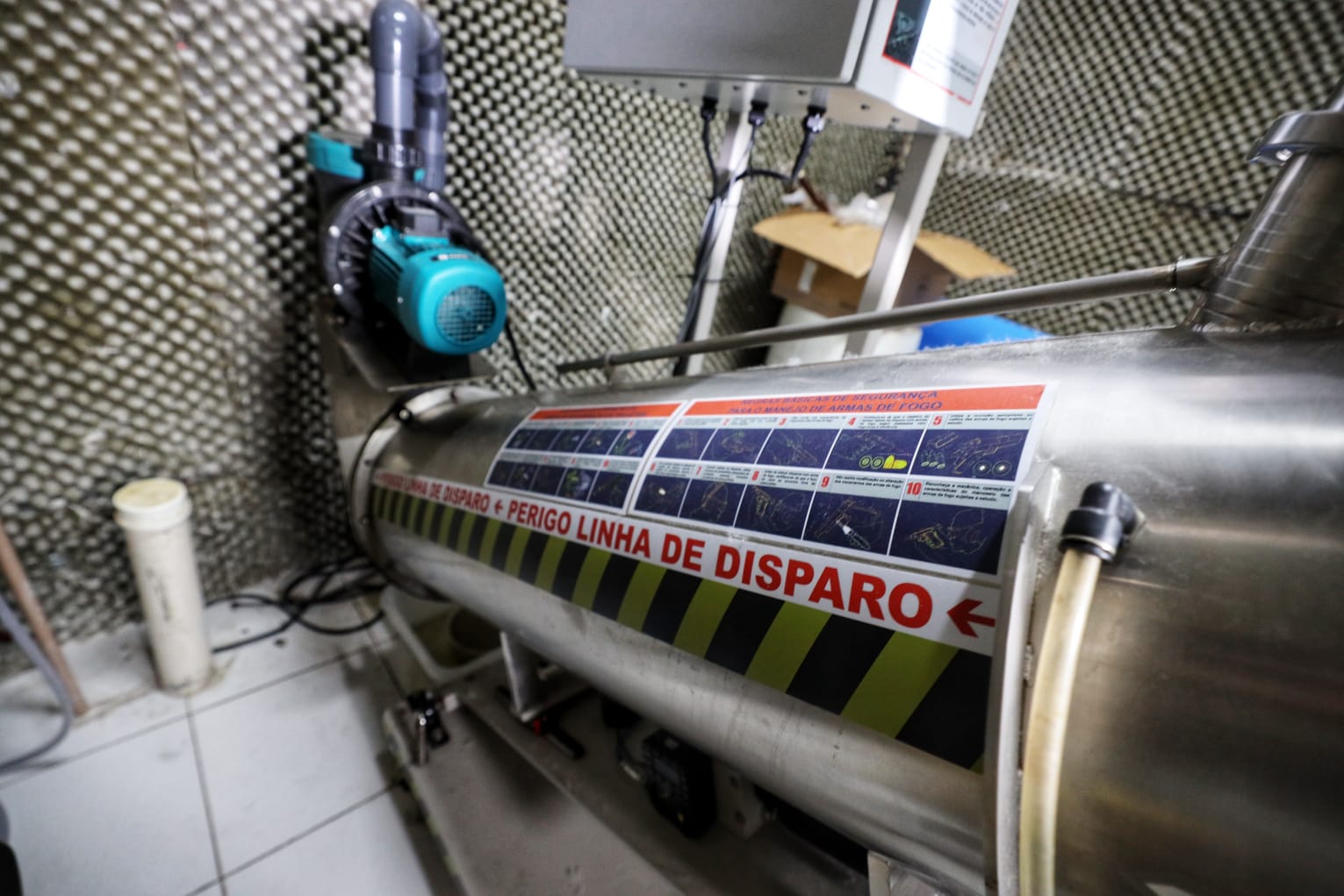 Outro recurso fundamental para a perícia é o túnel ou coletor balístico, que permite a obtenção dos padrões de disparo de armas suspeitas. “Com a arma municiada, realizamos disparos no coletor para obter os projéteis necessários para análise comparativa. Isso garante que conseguimos identificar com exatidão de qual arma partiu o disparo”, explicou Magali.