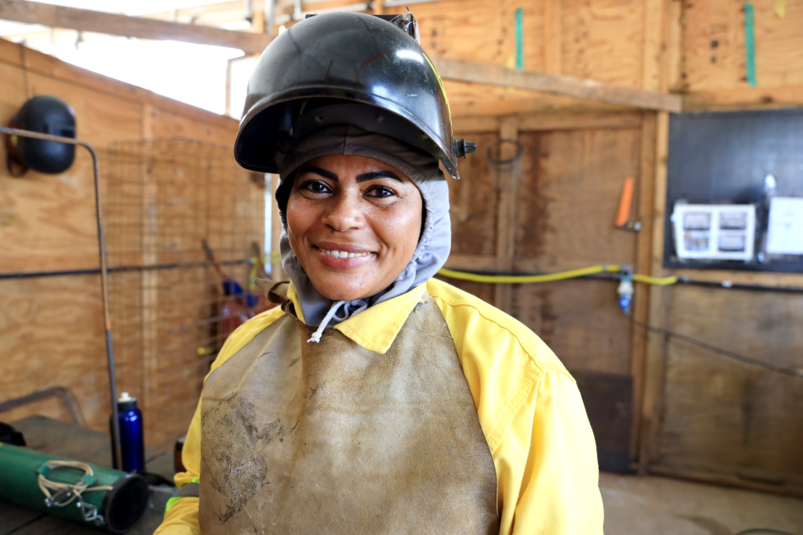 Moradora de Simões Filho, Ivanildes Ferreira é soldadora e já imagina como será viajar no modal, que hoje ajuda a construir. “Cheguei nessa obra há dois meses, e para mim é gratificante. Espero que com o decorrer do serviço, cheguem outras mulheres, como pedreira, carpinteira, armadora. Quando o VLT estiver indo e vindo, eu vou estar ali, plena, contando que eu participei desse empreendimento”.