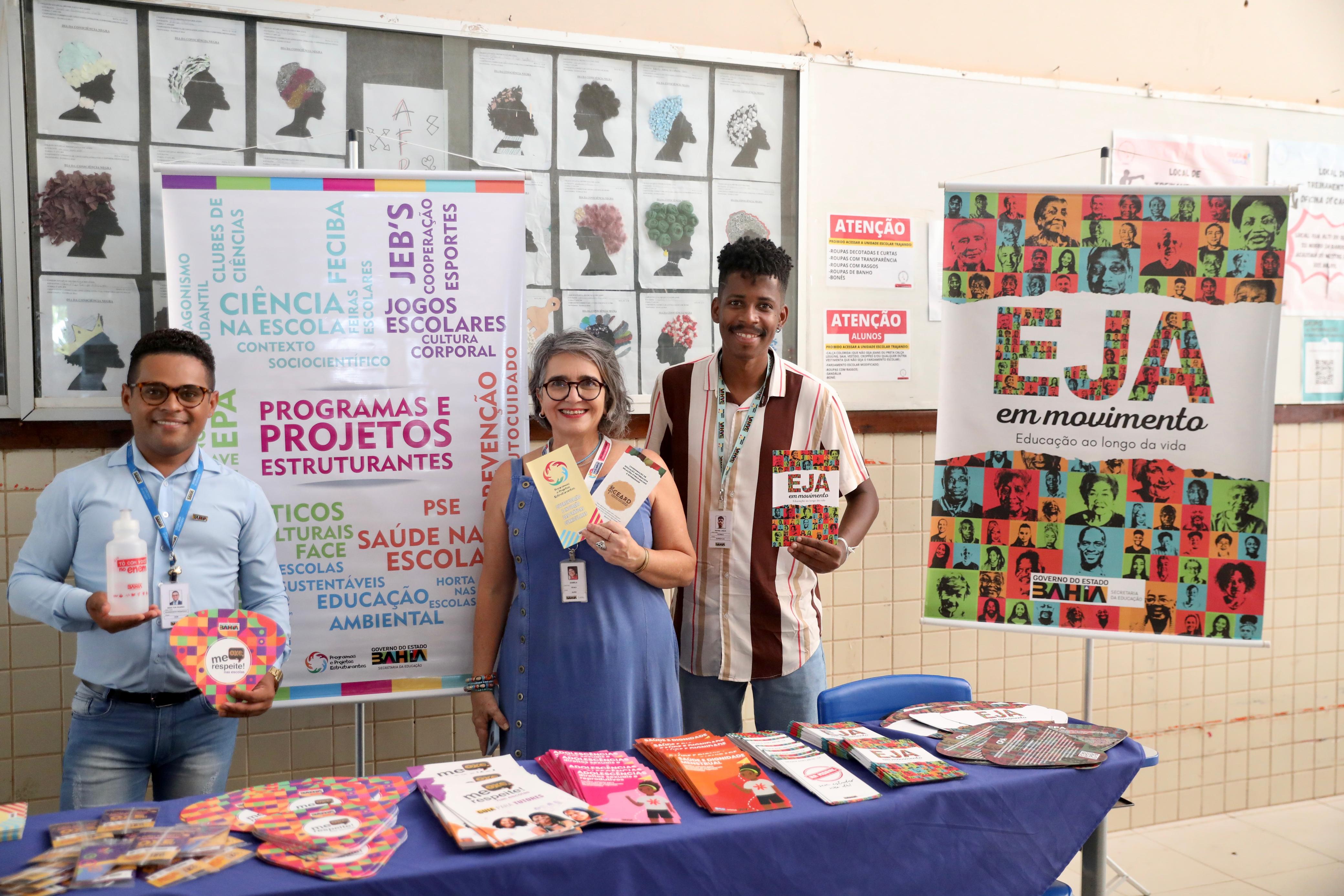 Durante a ação, a SEC disponibilizou estandes voltados ao atendimento e orientação da comunidade. No espaço da Ouvidoria da SEC, estão sendo apresentados os canais de comunicação para escuta e acolhimento da comunidade escolar, além da distribuição de materiais informativos sobre os programas da pasta, como Pé-de-Meia, Bolsa Presença e Primeiro Emprego. A Coordenação de Educação de Jovens e Adultos também está presente com um estande exclusivo, realizando inscrições para os exames de certificação dos ensinos Fundamental e Médio e orientações sobre a EJA.
