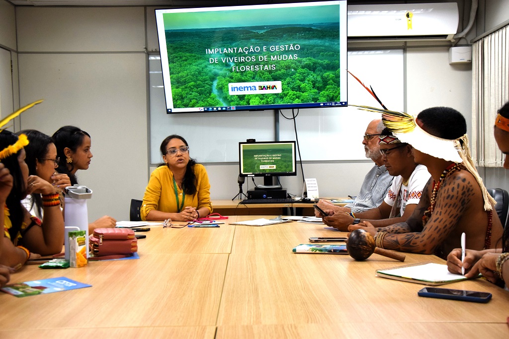 O Instituto do Meio Ambiente e Recursos Hídricos (Inema) apresentou nesta terça-feira (29), em Salvador, uma proposta de projeto para implantação e gestão de viveiros de mudas florestais em comunidades indígenas do extremo sul da Bahia. A iniciativa foi apresentada às lideranças da Federação Indígena das Nações Pataxó e Tupinambá (Finpat), durante reunião com o secretário estadual do Meio Ambiente, Eduardo Mendonça Sodré Martins, e a diretora-geral do Inema, Maria Amélia Lins.