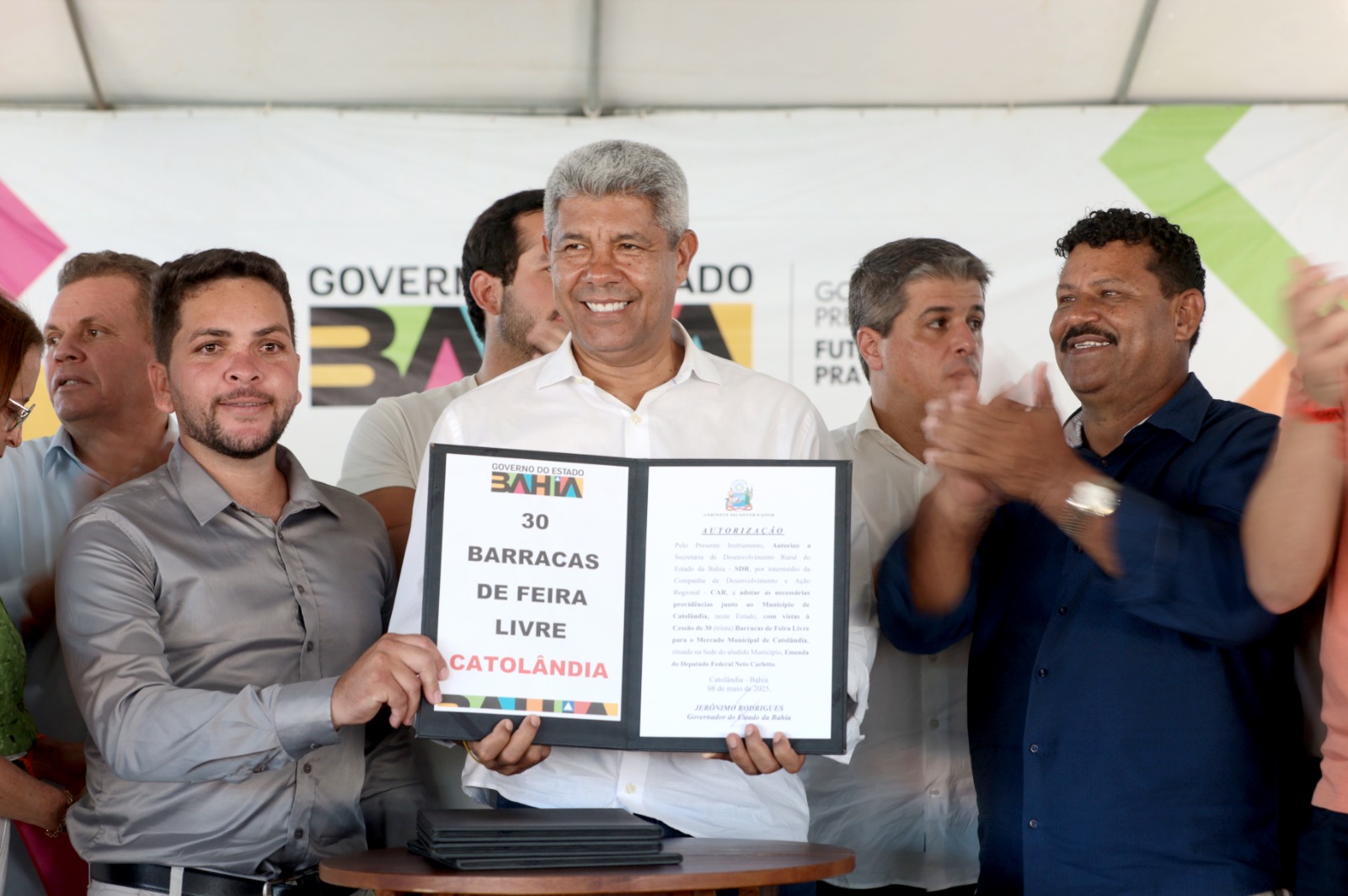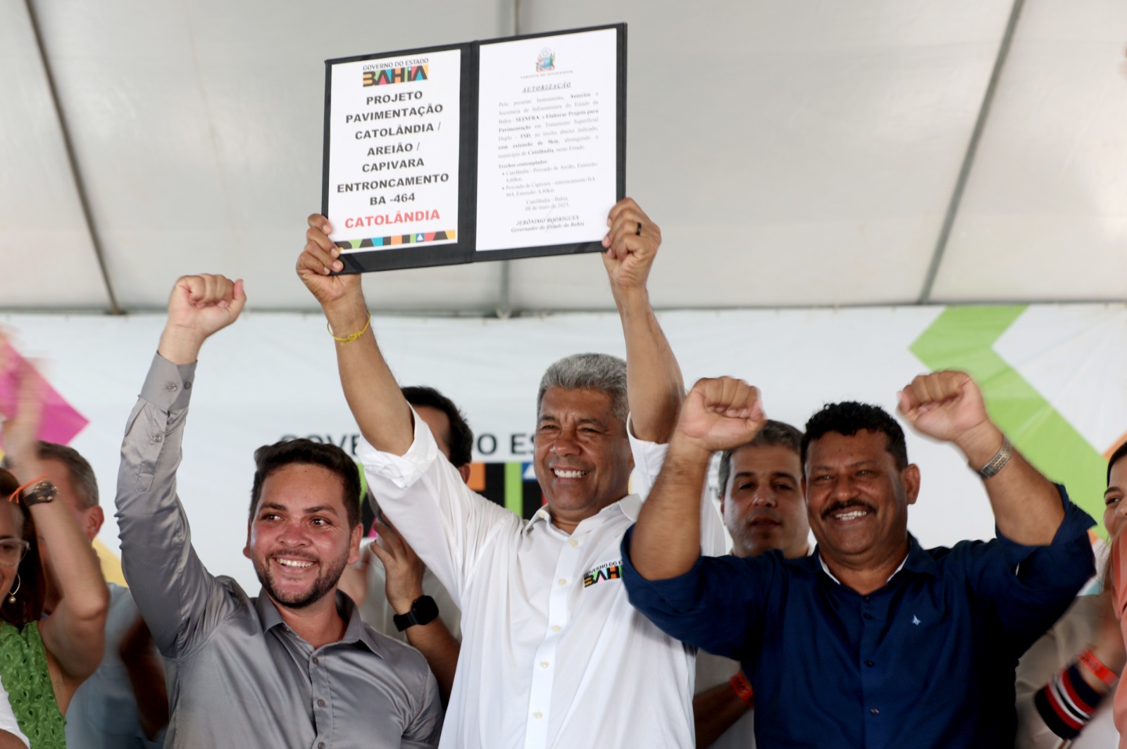 Além das inaugurações, foram entregues ao município um ônibus escolar rural, uma ambulância, um veículo administrativo, um kit de estabilização e um kit para a Unidade Básica de Saúde (UBS), reforçando os serviços públicos e ampliando o atendimento à população.  Na ocasião, o governador autorizou a Secretaria de Infraestrutura do Estado da Bahia (Seinfra) a elaborar o projeto de pavimentação de nove quilômetros de extensão em Catolândia. A iniciativa contempla o trecho entre a sede do município e o povoado de Areião, e o trecho que liga o povoado de Capivara ao entroncamento com a BA-464.