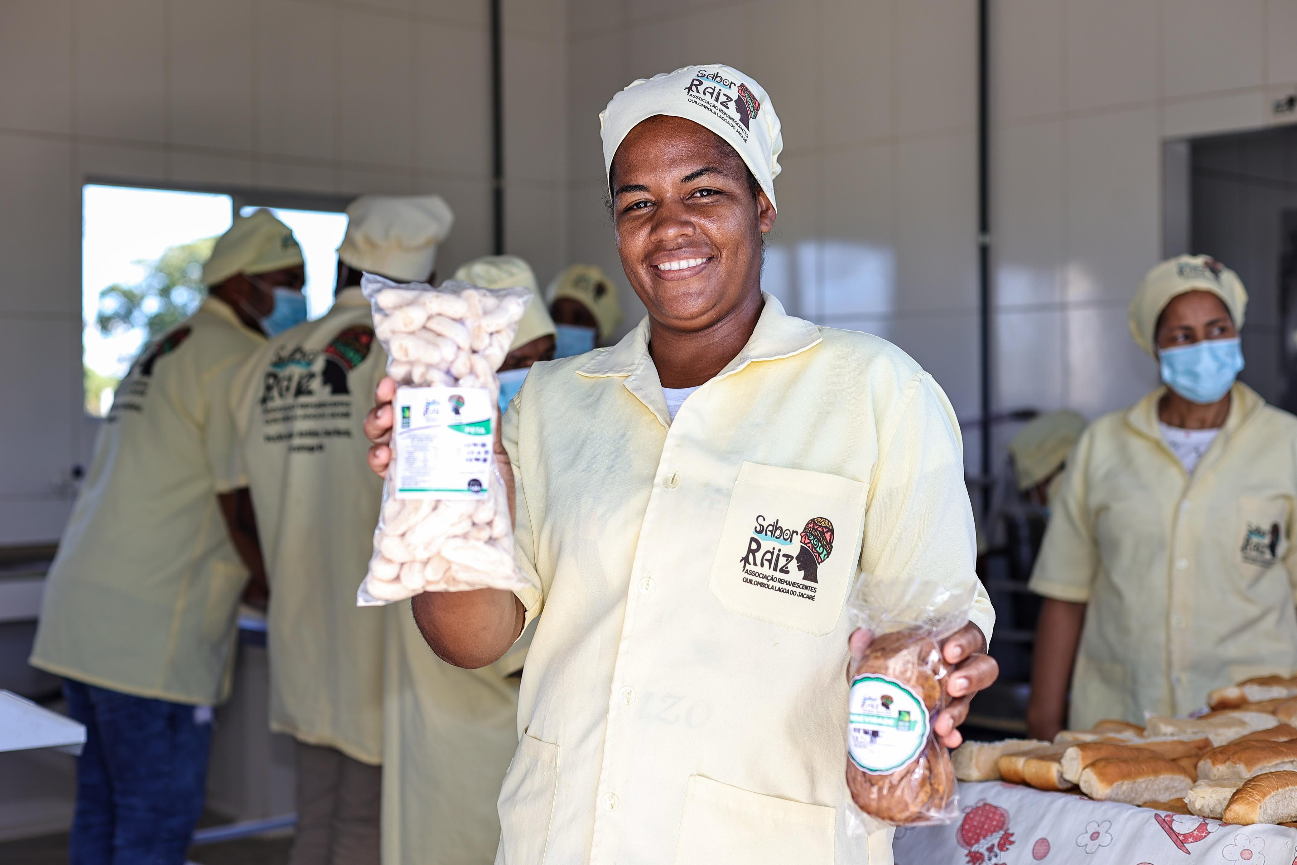 A unidade foi entregue pelo Governo do Estado, por meio da Companhia de Desenvolvimento e Ação Regional (CAR), em 2021. Equipada com forno e batedeira industrial, bancada, seladora e outros utensílios, segue em pleno funcionamento, fazendo a diferença no quilombo e ofertando alimentos com a marca Sabor Raiz.