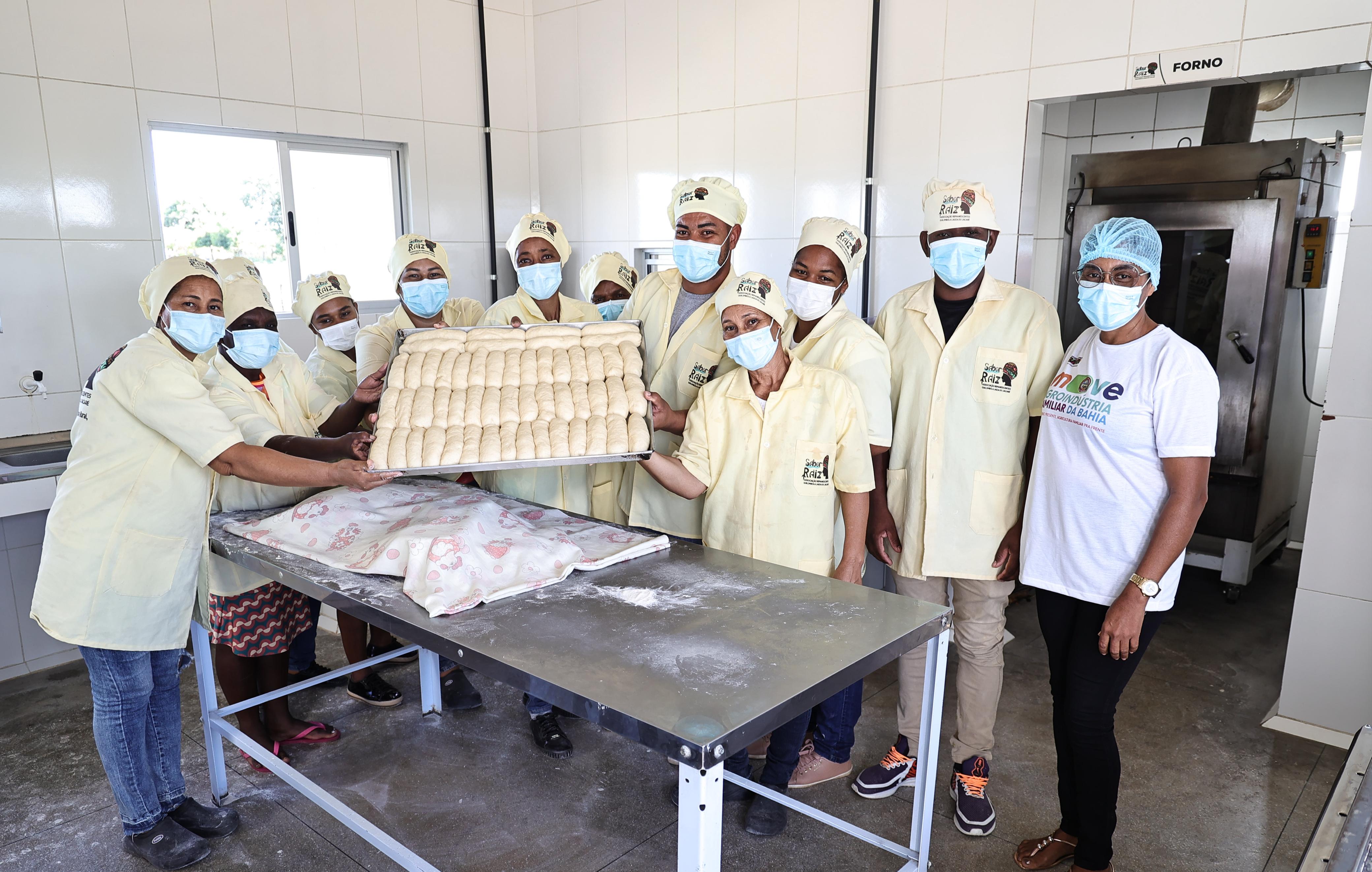 Enquanto finalizava a massa do pão, Calebe Santana, coordenador de produção da Sabor Raiz, compartilhou um pouco de sua trajetória, revelando que o gosto pela produção de alimentos vem de família. “Minha avó era uma doceira famosa. Ela ensinou minha mãe e eu herdei essa habilidade de fazer os produtos. Fora daqui da unidade, também sou confeiteiro e produzo doces”, contou.