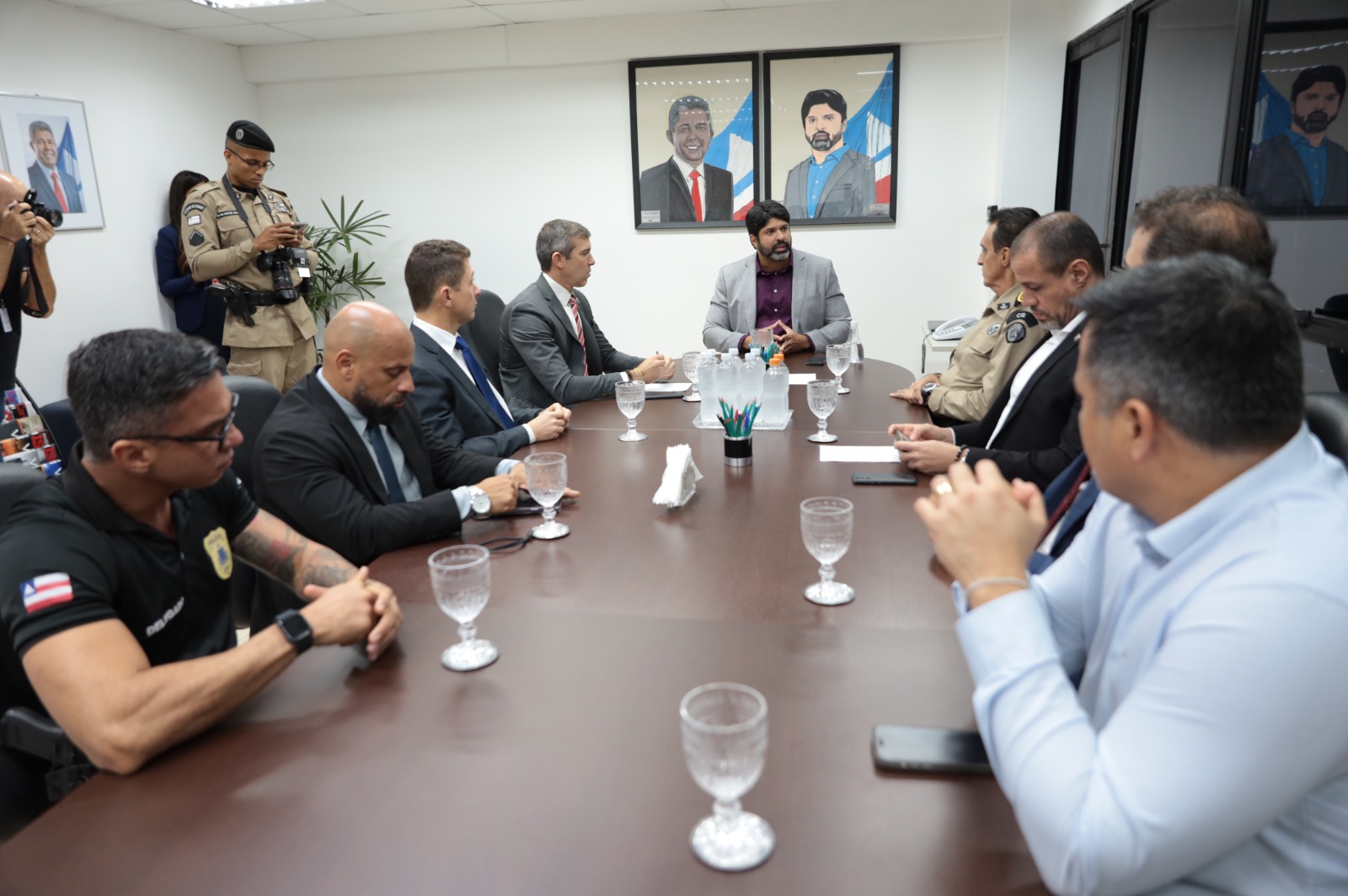 Novas ações de combate ao crime organizado em resposta ao ataque, que deixou ferido o motorista do diretor do Presídio de Eunápolis, foram debatidas na tarde desta quarta-feira (21). A reunião para articulação de um plano de ação contou com a presença de gestores e técnicos das secretarias da Segurança Pública (SSP) e de Administração Penitenciária e Ressocialização (SEAP), além das polícias Militar e Civil.