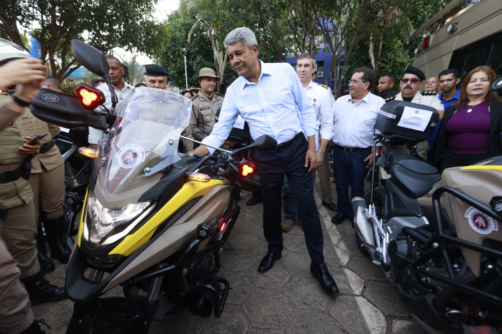 A frota incluiu 15 motocicletas, duas bases móveis e seis caminhonetes modelo Hilux, que irão beneficiar diretamente Companhias Independentes, de Policiamento Especializado e Rodoviária dos municípios da região, entre eles Luis Eduardo Magalhães, Ibotirama, Formosa do Rio Preto, Bom Jesus da Lapa, Macaúbas, Santa Maria da Vitória, Riachão das Neves e Barreiras.