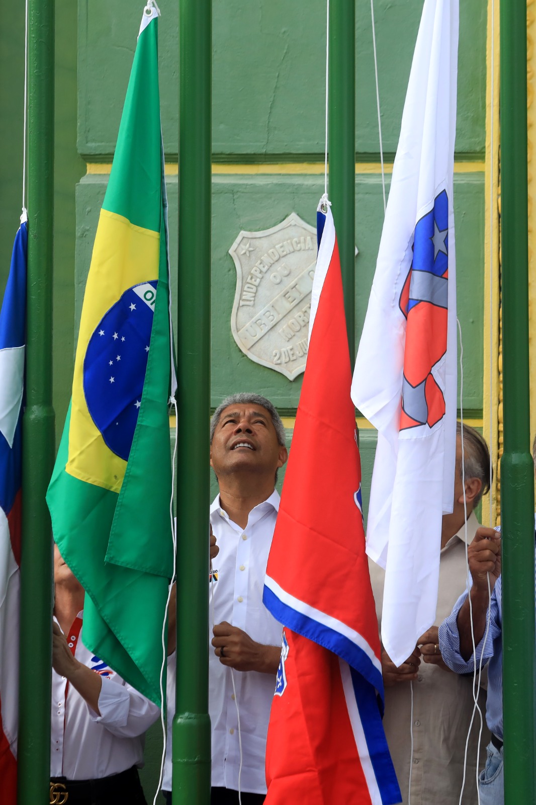 “É nossa alegria, porque nós começamos desde o dia 25 de junho, em Cachoeira, e hoje a consolidação. Desde criança e adolescente que eu participava dessa data, desfilando pela escola, fazendo as apresentações, fui crescendo e, cada vez mais, me consolidando enquanto um cidadão que tem consciência do Dois de Julho. Agora como governador, forçar para que a gente possa incluir no currículo escolar, para explicar às nossas crianças, adolescentes e jovens, o significado dessa data”, disse Jerônimo no início do cortejo.