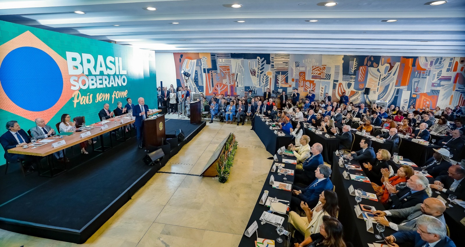 Em seu discurso, o presidente Lula também abordou o cenário internacional, com uma fala firme em defesa da soberania nacional e do respeito mútuo entre os países. “Não é possível o mundo dar certo se perdermos o senso de responsabilidade e o respeito à soberania, à integridade territorial e ao funcionamento das instituições. Quando começamos a dar palpite nos assuntos de outros países, ferimos algo sagrado: a soberania”, declarou o presidente, sem mencionar diretamente conflitos específicos, mas enviando uma mensagem clara sobre a política externa brasileira.