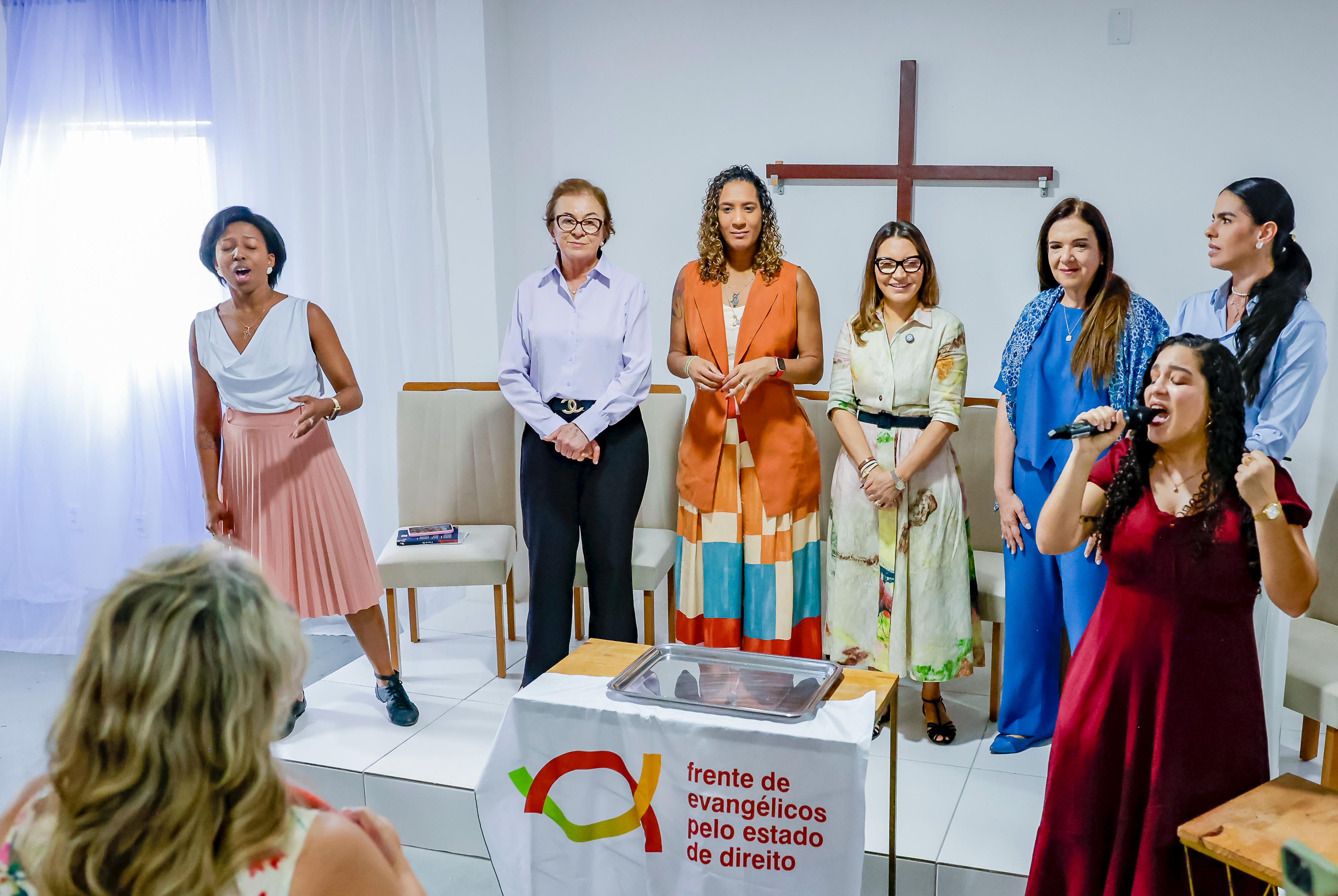 O encontro incluiu momentos de acolhimento e fala das lideranças religiosas. Representando a Frente de Evangélicos pelo Estado de Direito, Caroline Otávio apresentou as ações da organização e falou da participação política de mulheres evangélicas. “A gente precisa tirar o nosso povo do sofrimento. A gente ora, a gente constrói pontes, diálogos, e é isso que a Frente é: ponte para as mulheres, canal de fortalecimento. A gente quer que esses encontros se tornem lugar de escuta ativa e participação política para as mulheres”, compartilhou.
