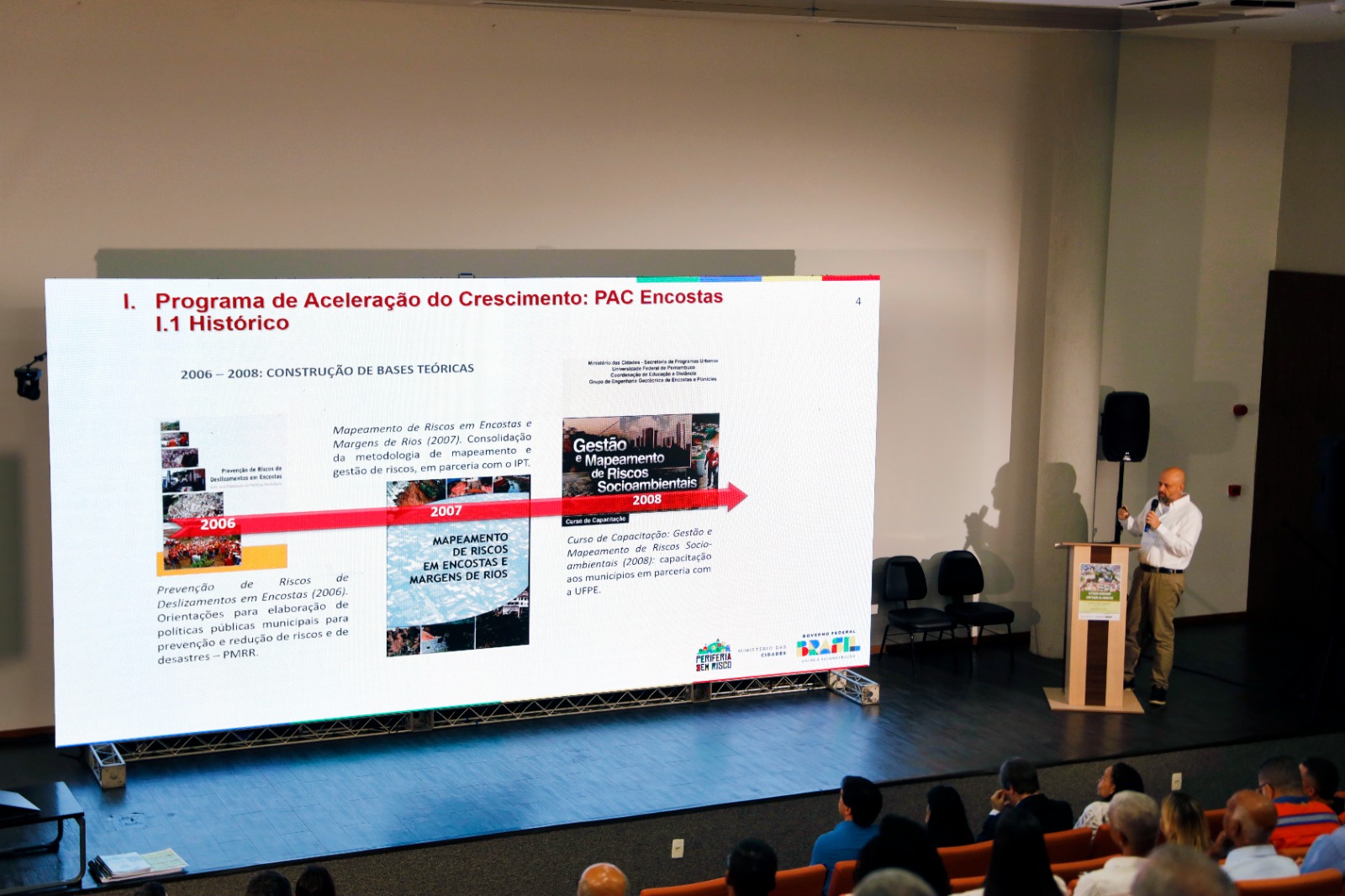 Coordenador-geral do Departamento de Prevenção de Riscos do Ministério das Cidades, Carlos Gonçalves abriu o evento, apresentando o novo PAC Seleções e como os municípios podem requerer recursos federais com base nos planos municipais. “Os planos municipais são muito importantes na seleção de obras do PAC. Esses planos, esses mapeamentos apoiam na escolha das obras. Então, tendo mais projetos, a gente espera ampliar o apoio aos municípios baianos”, disse o coordenador.