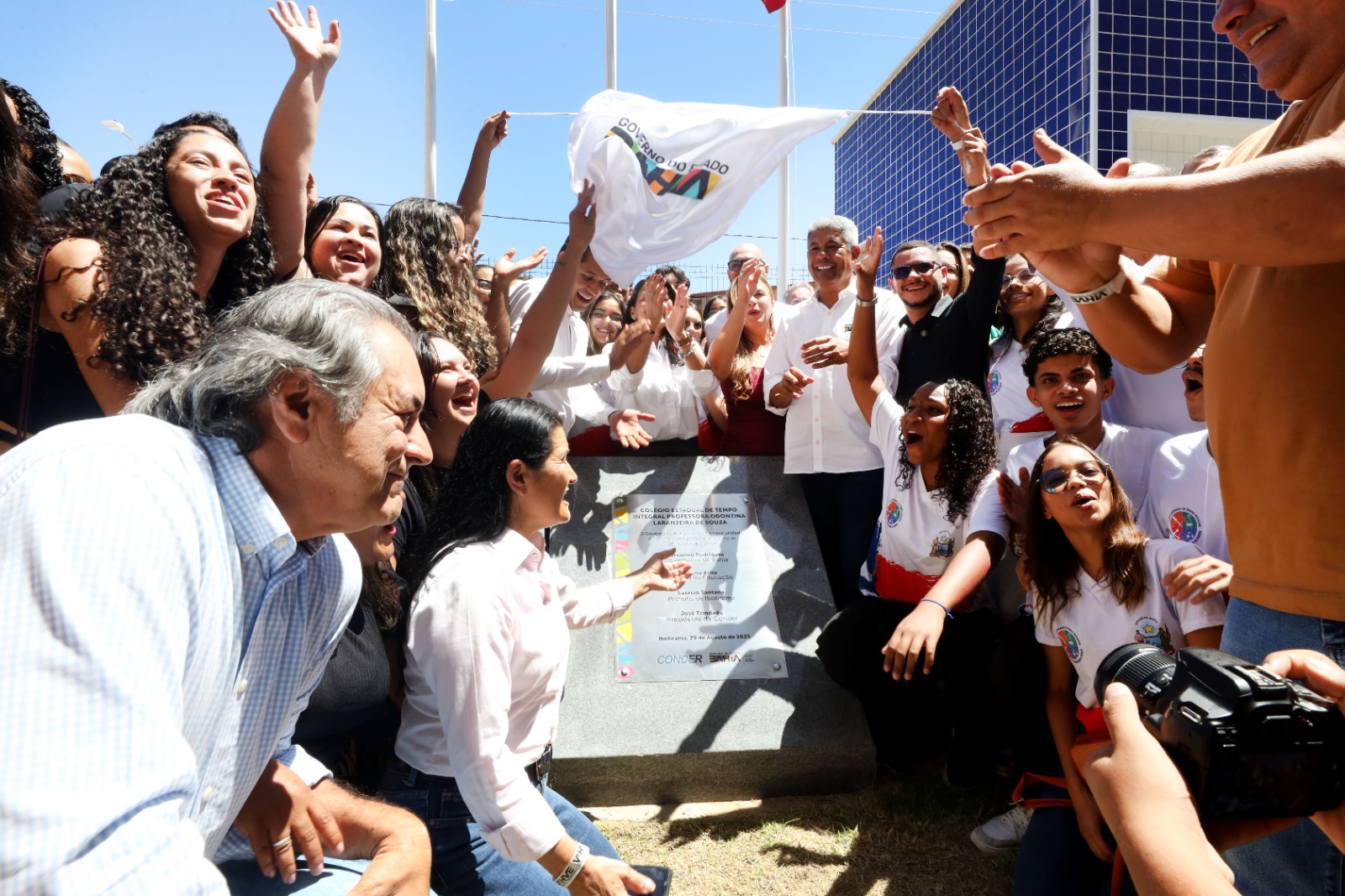 Em Ibotirama, nesta sexta-feira (28), o governador Jerônimo Rodrigues inaugurou a nova sede do Colégio Estadual de Tempo Integral Professora Odontina Laranjeira de Souza. Com investimento de R$ 36,7 milhões, o moderno complexo educacional conta com 24 salas de aula, biblioteca, teatro com 200 lugares, quatro laboratórios (química e biologia, física e matemática, linguagem e informática), sala multifuncional, sala de dança, restaurante estudantil com capacidade para 200 alunos, piscina semiolímpica, vestiários, quadra poliesportiva coberta, campo de futebol society com pista de atletismo, subestação elétrica, guarita e 15 banheiros.