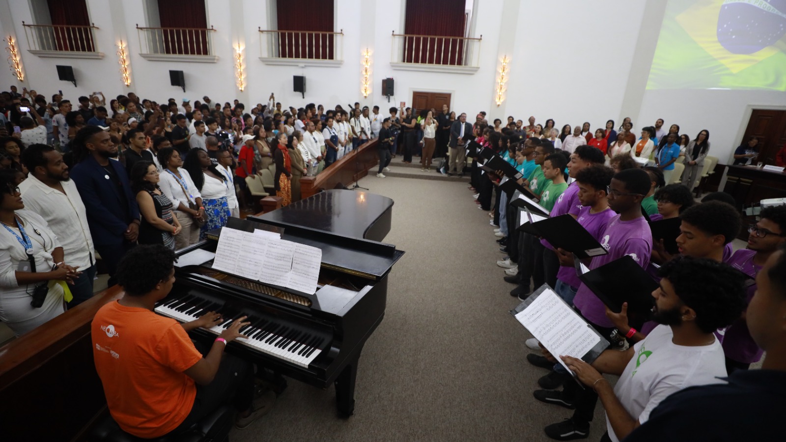 O Acordo de Cooperação Técnica entre o Governo do Estado e o Ministério da Justiça e Segurança Pública (MJSP), para a implementação integrada do Programa Nacional de Segurança Pública com Cidadania - PRONASCI Juventude, foi assinado neste sábado (30), durante solenidade realizada na Reitoria da Universidade Federal da Bahia, em Salvador. O evento contemplou atrações culturais e oficinas pedagógicas e contou com a apresentação do Coro Infantojuvenil do Neojiba com o pianista Erick Santos Silva. A secretária Nacional de Políticas sobre Drogas, do MJSP, Marta Machado, e o secretário estadual de Justiça e Direitos Humanos, Felipe Freitas, além de representantes de órgãos e instituições com atuação na área estiveram presentes ao evento.