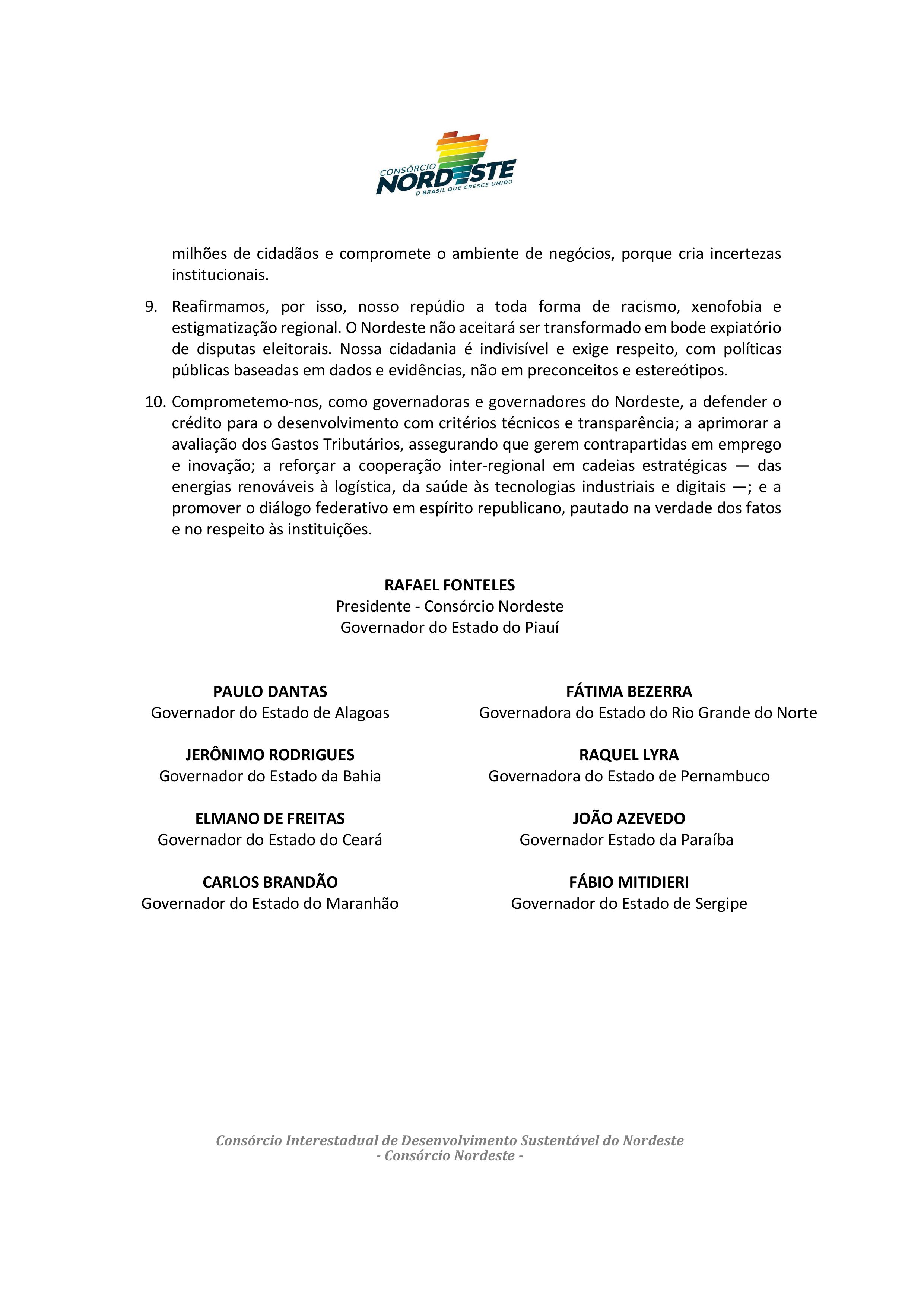 O Governo da Bahia se manifesta contrário e vigilante a toda forma de racismo, xenofobia e estigmatização regional. O Nordeste não aceitará ser transformado em bode expiatório de disputas eleitorais: nossa cidadania é indivisível e exige respeito, com políticas públicas pautadas em dados e evidências, não em preconceitos e estereótipos.