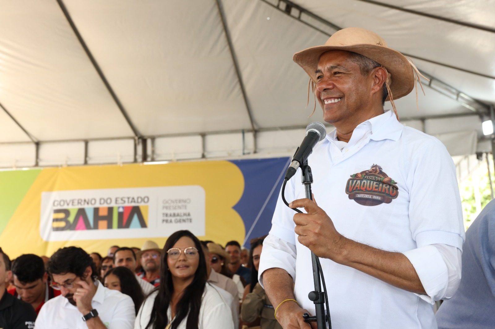 Ainda em Cravolândia, o governador prestigiou a Festa do Vaqueiro 2025, um dos eventos mais tradicionais da região. Jerônimo participou da cavalgada que saiu do povoado de Palestina, reforçando a ligação do governo com a cultura e as tradições locais.