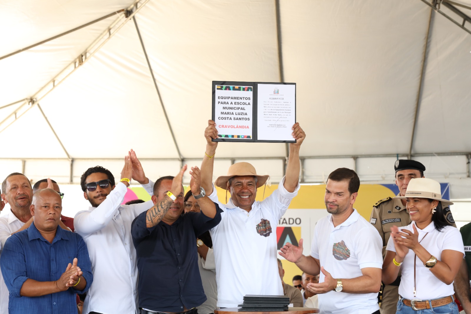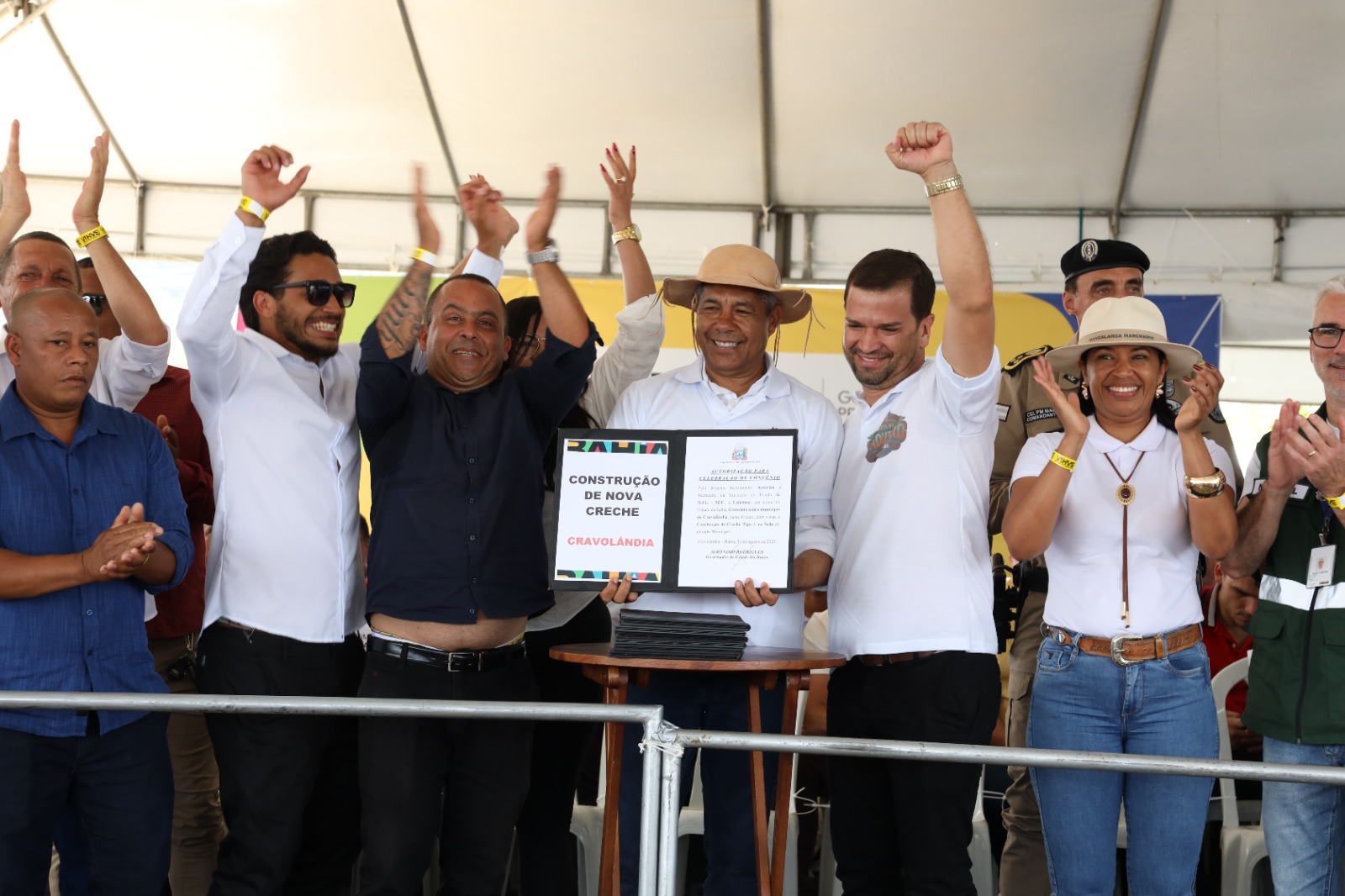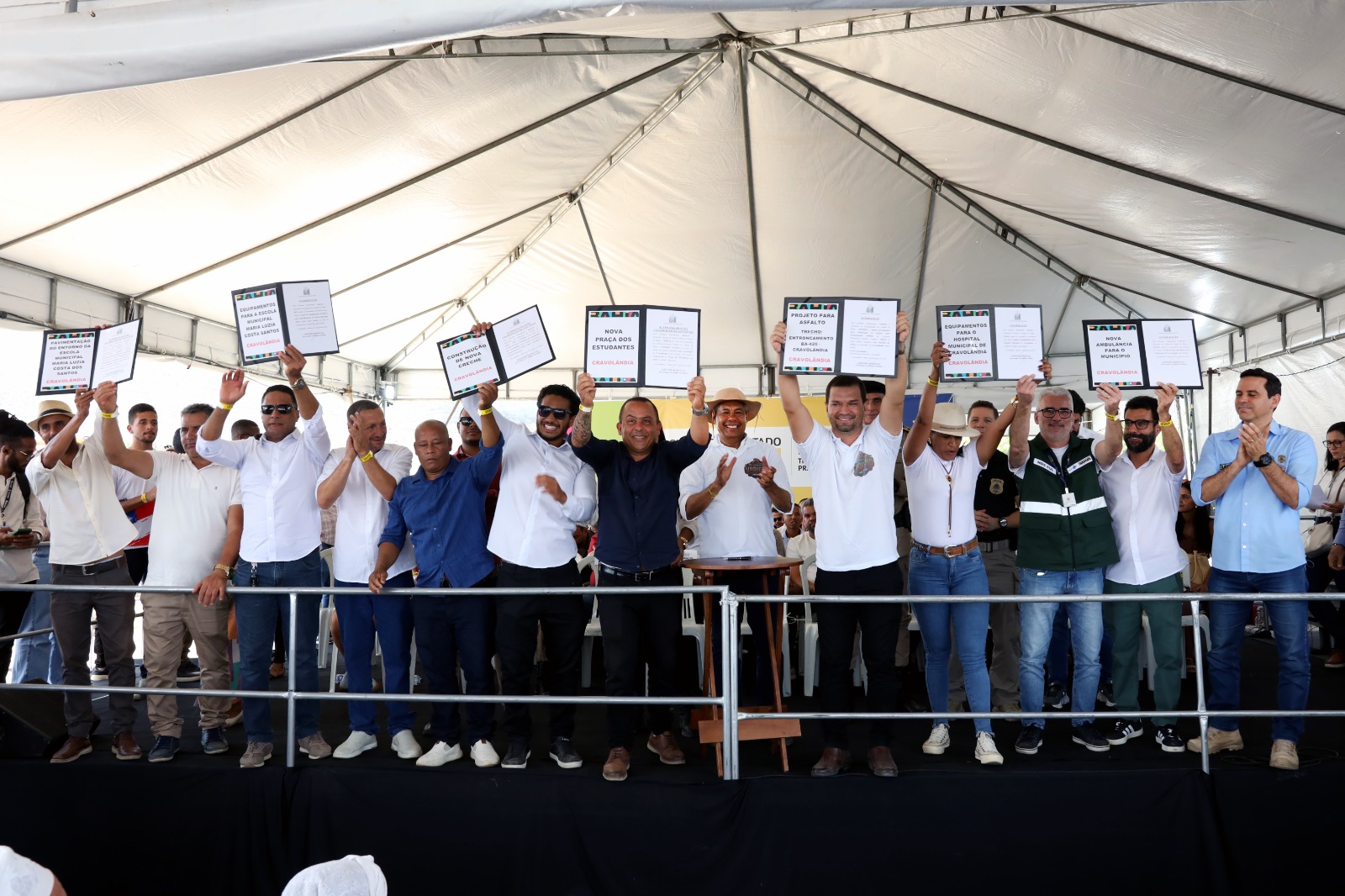 O evento também foi palco para anúncios de futuras obras e entregas de equipamentos. O governador autorizou a cessão de uma ambulância para Cravolândia e equipamentos para o hospital municipal. Foram autorizados convênios para a construção de uma creche, que irá ampliar a oferta de vagas para a educação infantil, com recursos de R$5,7 milhões do Governo do Estado. A pavimentação em paralelepípedo e drenagem no entorno da Escola Municipal Maria Luzia Costa dos Santos foi outro anúncio importante, que qualifica o acesso e a segurança para os estudantes, além da cessão de equipamentos para a unidade de ensino.