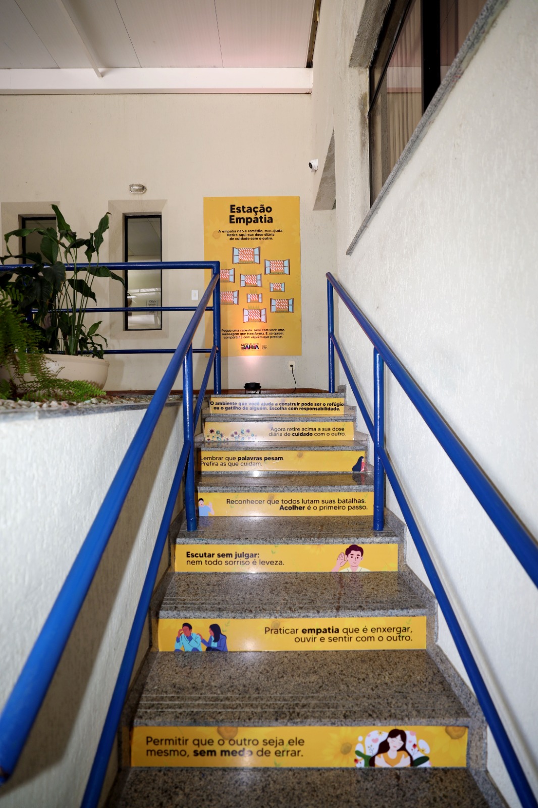 A proposta é simples, mas carregada de significado: transformar a escada da área de convivência em um espaço de reflexão. Em cada degrau, frases inspiradoras convidam servidores, colaboradores e visitantes a pensar sobre a importância da empatia e do cuidado com o próximo. “Uma iniciativa como essa pode impactar positivamente a vida de um colega que esteja passando por um momento difícil. É essencial reforçar sempre a importância da saúde mental no ambiente de trabalho”, afirma a servidora Cristiane Avelino. Ao final do percurso, a Estação Empatia aguarda quem deseja levar uma mensagem motivacional em cápsulas, pequenas doses de coragem e esperança para enfrentar os desafios do dia a dia.