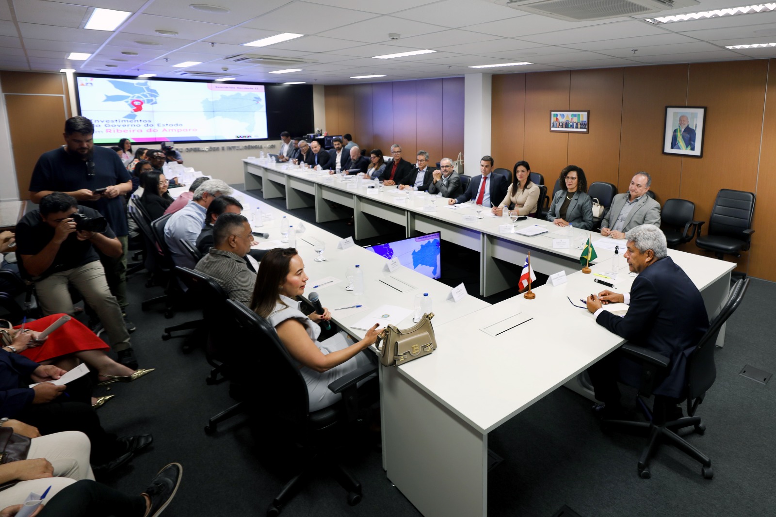 Escolas, estradas, abastecimento de água, equipamentos para a segurança e espaços de lazer integram o conjunto de obras públicas em execução ou já entregues pelo Governo do Estado ao município de Ribeira do Amparo, na região Nordeste da Bahia. Nesta terça-feira (9), o governador Jerônimo Rodrigues se reuniu, no gabinete oficial, com a prefeita da cidade, Teti Britto, e com secretários municipais e estaduais, para alinhamento de projetos para a cidade. A reunião também foi marcada pela entrega de dois veículos para Tratamento Fora do Domicílio (TFD) e de um ônibus escolar.