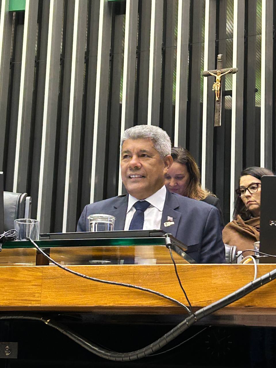 O governador da Bahia, Jerônimo Rodrigues, participou nesta quarta-feira (17) da sessão solene em homenagem aos 192 anos de emancipação política de Feira de Santana, realizada no Plenário da Câmara dos Deputados.