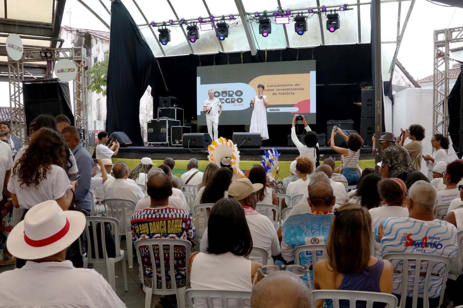 O Governo do Estado, por meio da Secretaria de Cultura (Secult-BA), lançou, nesta sexta-feira (26), o Edital Ouro Negro 2026, com investimento recorde de R$ 17 milhões para apoio às entidades culturais de matrizes africanas. O valor representa R$ 2 milhões a mais do que em 2025 e marca os 18 anos de história do programa. O evento aconteceu na Praça Tereza Batista, no Pelourinho, e contou com a presença de representantes das agremiações.