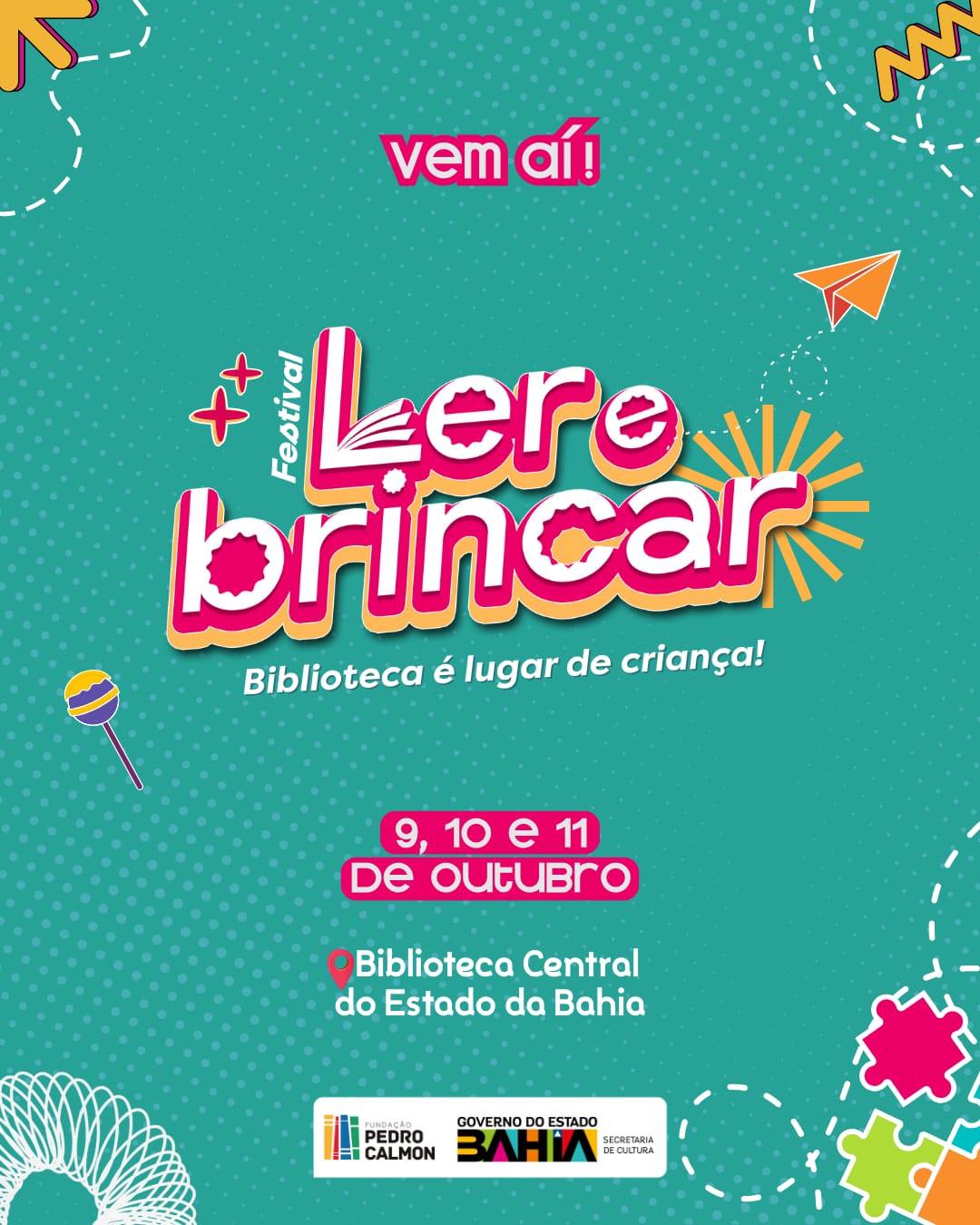 A Biblioteca Central do Estado da Bahia irá se transformar em um grande palco para a celebração da infância. Com curadoria da escritora Emília Nuñez, o Festival "Ler e Brincar: Biblioteca é Lugar de Criança”, acontecerá nos dias 09, 10 e 11 de outubro. A programação reúne contações de histórias, bate-papos, lançamentos, espetáculos teatrais e musicais, além de momentos especiais que aproximam os pequenos leitores da criação literária.