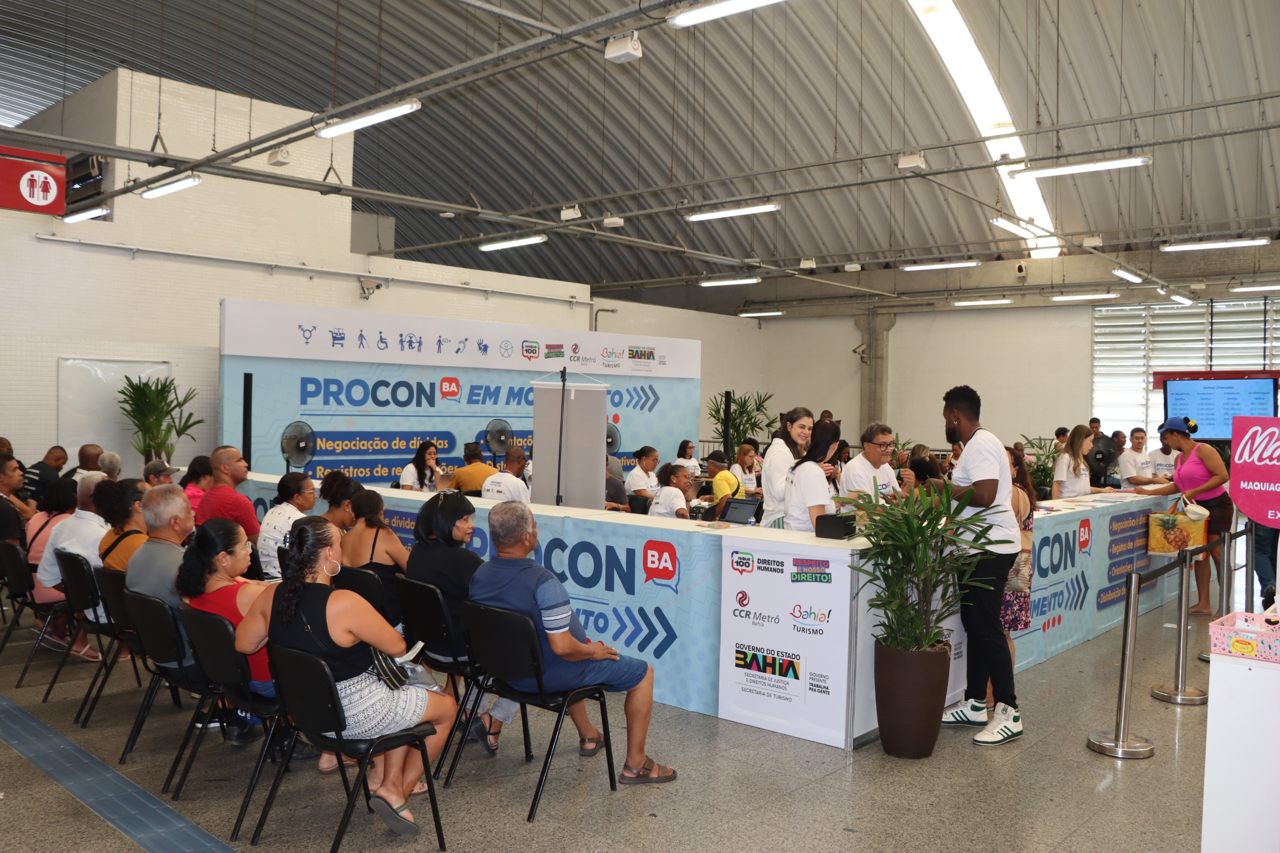 Negociar débitos com instituições financeiras e com empresas que fornecem serviços de energia e telefonia levaram centenas de pessoas a buscar o atendimento do ‘Procon em Movimento’, realizado na Estação de Metrô Pirajá. A ação itinerante Procon-BA - órgão vinculado à Secretaria de Justiça e Direitos Humanos (SJDH) -, em parceria com o Metrô Bahia e a Câmara de Dirigentes Lojistas Salvador (CDL), garantiu cerca de 1.300 atendimentos durante quinta-feira (30) e sexta-feira (31).