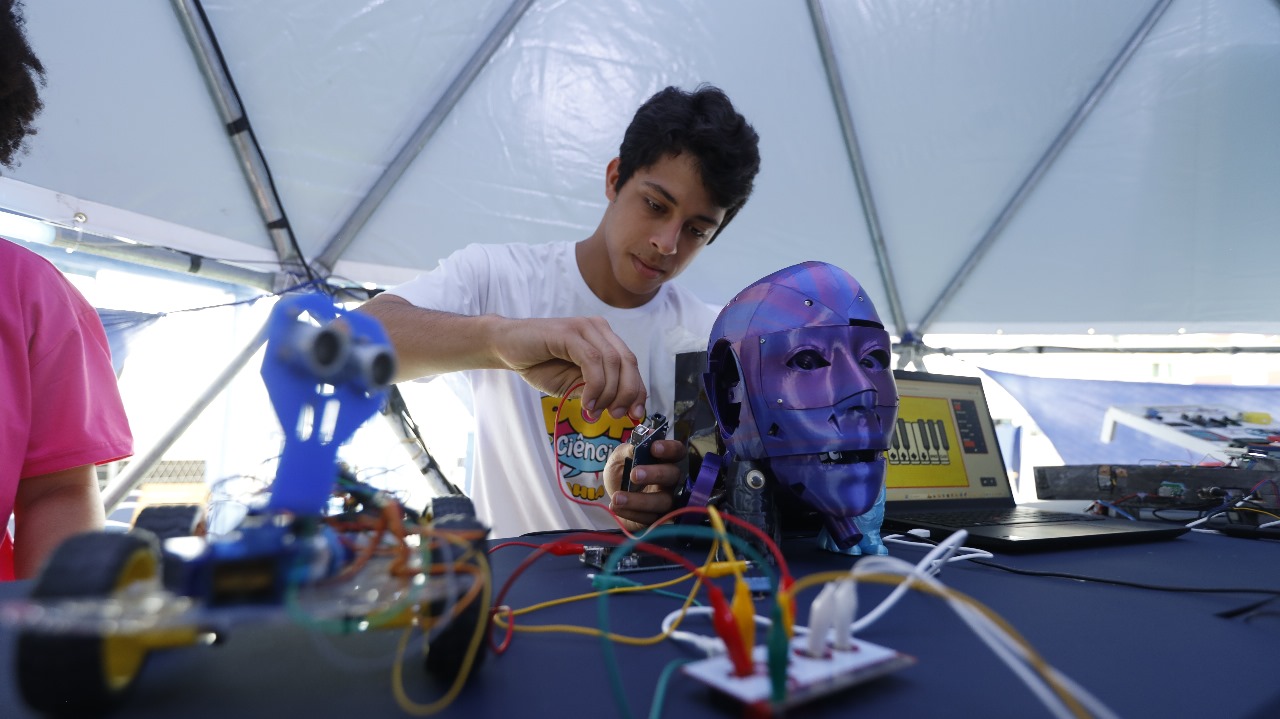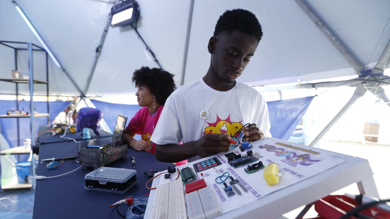 Um dos eixos centrais da SNCT 2025 na Bahia é o protagonismo da juventude. Centenas de estudantes da rede pública apresentam seus projetos e mostram que o interesse pela ciência cresce quando o aprendizado se conecta com a realidade local. Para a estudante do Centro Estadual de Educação Profissional em Ciência, Tecnologia e Comunicação (CEEPTIC) de Lauro de Freitas, Ananda Jacira Tolentino, que expõe junto com os colegas 10 projetos sobre robótica, o evento representa um incentivo para seguir na carreira “eu entrei como mais um passatempo. Só que a partir do momento que eu comecei a estudar um pouco mais, eu comecei a procurar problemas para resolver dentro da escola, a professora foi ajudando. Eu fui me interessando mais e a professora agora está tentando ajudar a gente a procurar novos meios, novas oportunidades. Eu estou feliz e eu estou pretendendo cursar engenharia para seguir os passos dela”.