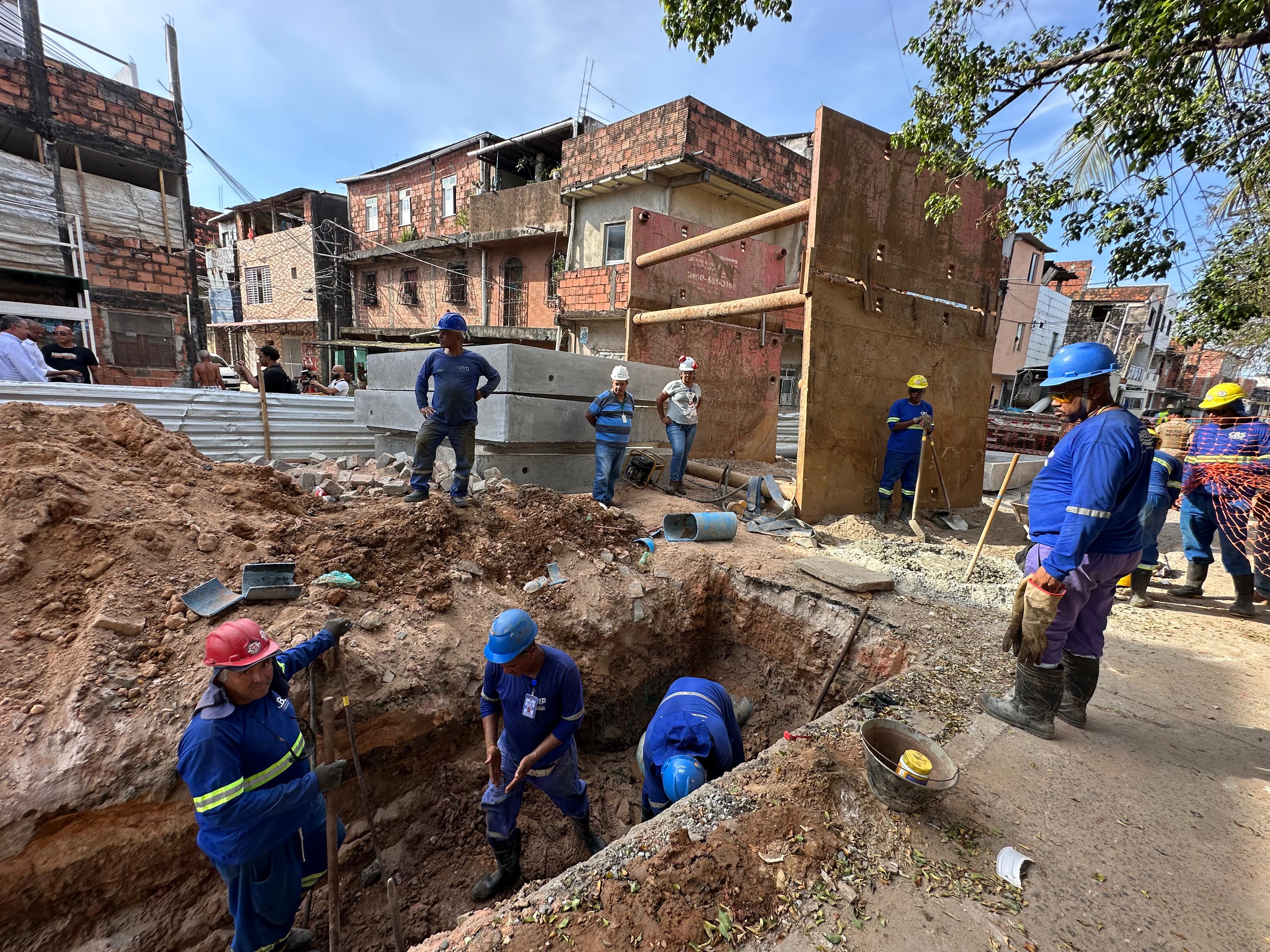 As obras executadas pela Conder já alcançam 69% de avanço físico e têm conclusão prevista para 2026. O projeto abrange 33 ruas divididas em quatro lotes, com implantação de sistemas de micro e macrodrenagem, limpeza e recuperação de canais, pavimentação, ciclovias, parque linear e pista de corrida.