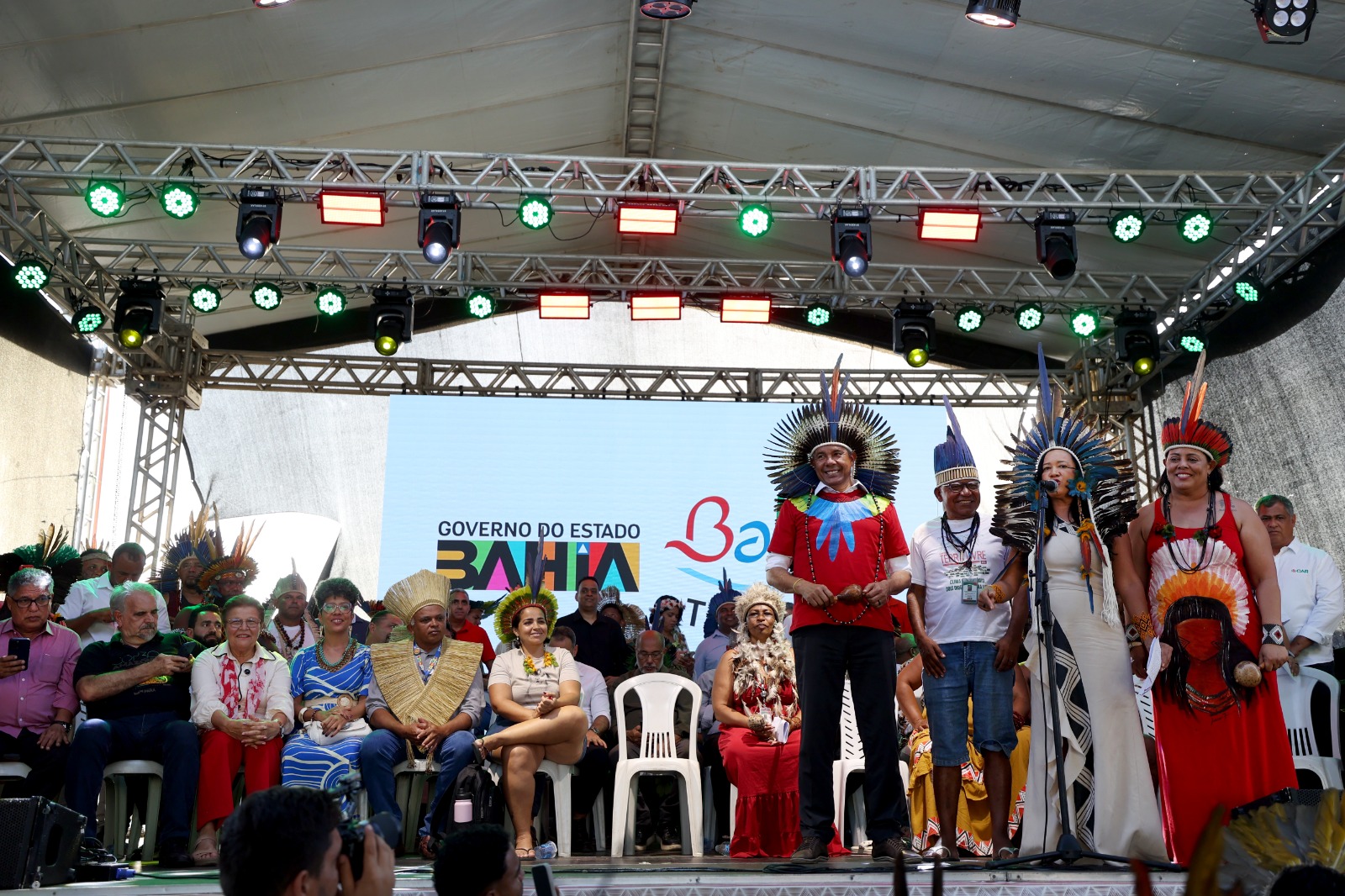 Com o tema “Clima e Território: duas lutas, um direito”, o encontro - apoiado pelo Governo do Estado - teve início no último domingo (2), reunindo mais de 2 mil indígenas de 55 municípios do território baiano. O evento foi encerrado pelo governador. “Quando uso o meu cocar indígena, não o utilizo como enfeite, mas como símbolo da minha origem. Hoje anunciamos um conjunto de investimentos que garantirá às comunidades indígenas o que lhes é de direito”, afirmou o chefe do Executivo baiano.