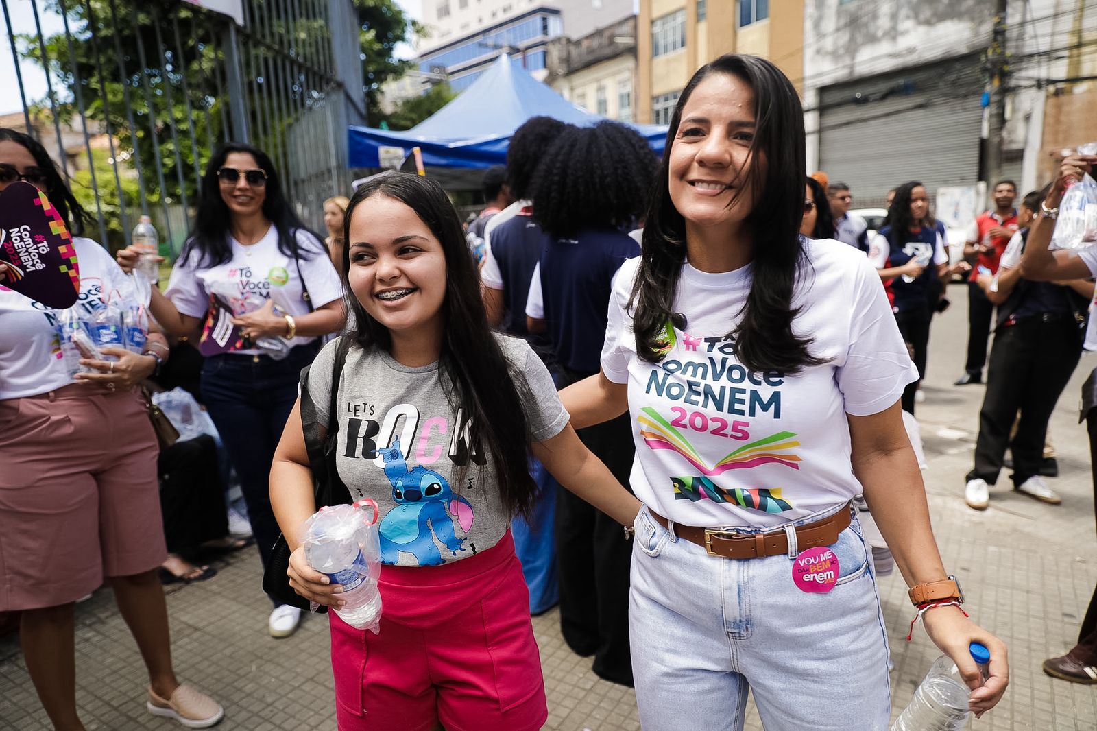 No Colégio Central, no centro da capital baiana, a secretária da educação também acompanhou a entrega de kits com água, lanches e canetas, que acontece na porta das escolas e universidades que sediam o exame em toda a Bahia e nas estações de metrô de Salvador e Lauro de Freitas.