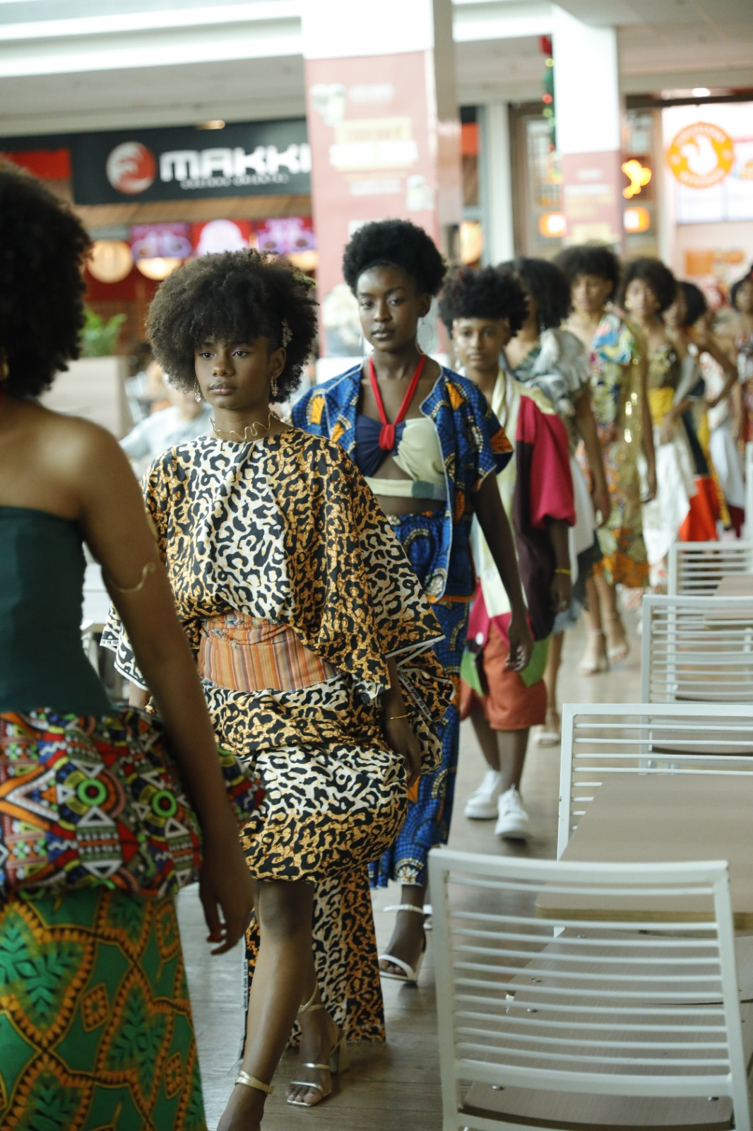 Depois de desfilarem nos corredores das secretarias estaduais da Educação (SEC) e da Saúde (Sesab), em celebração à cultura afro-brasileira dentro da campanha do Novembro Negro, estudantes do Colégio Estadual Clarisse Santiago dos Santos se apresentaram, nesta terça-feira (17), no Shopping Bela Vista. Voltado para a valorização da cultura, identidade e raízes do povo negro, o desfile de moda exibiu figurinos desenhados, customizados e costurados, no Ateliê Criativo Jovem em Ação, por alunos da unidade escolar situada no bairro do Arenoso, em Salvador, dentro do Programa Mais Educação, da SEC.