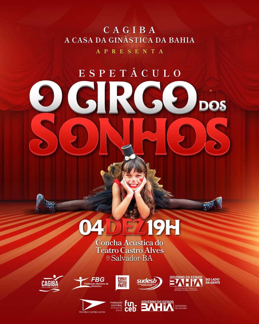Graça, talento e disciplina são alguns dos adjetivos que definem o trabalho dos jovens e adultos da Casa da Ginástica da Bahia (Cagiba), que vão promover uma noite mágica com o espetáculo “O Circo dos Sonhos”. A apresentação do projeto da Superintendência dos Desportos do Estado da Bahia (Sudesb), autarquia da Secretaria do trabalho, Emprego, Renda e Esporte (Setre), em parceria com a Federação Bahiana de Ginástica (FBG), acontece nesta quinta-feira (4), às 19h, na Concha Acústica do Teatro Castro Alves, em Salvador.