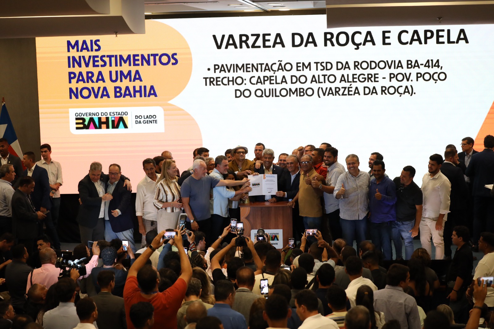 A prefeita de Mundo Novo, Ana Paula, destacou a importância da pavimentação para a cidade. “A melhoria do trecho vai melhorar o escoamento da produção agrícola e a qualidade de vida do povo de Mundo Novo”, considerou a prefeita. A cidade de Gongogi vai receber uma das UBS, e o prefeito Adriano Mendonça comemorou. “Essa obra é importante para a saúde do município. Agradecemos o compromisso em oferecer uma saúde de qualidade”, disse.