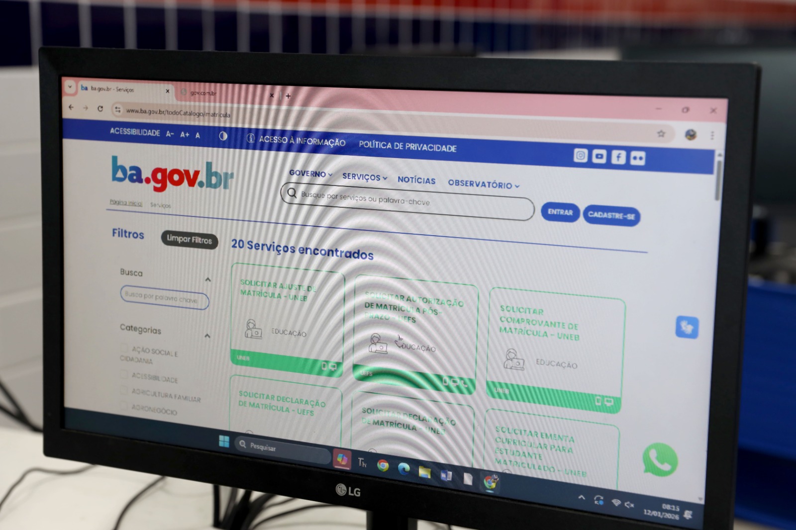 A rede estadual de educação da Bahia inicia, nesta segunda-feira (12), a matrícula para novos estudantes. O processo foi iniciado com matrícula prioritária para Pessoas com Deficiência (PcDs) e deve ser realizado, exclusivamente pela internet, por meio da plataforma https://ba.gov.br . As matrículas vão seguir um cronograma de escalonamento, que vão até o dia 20 de janeiro.