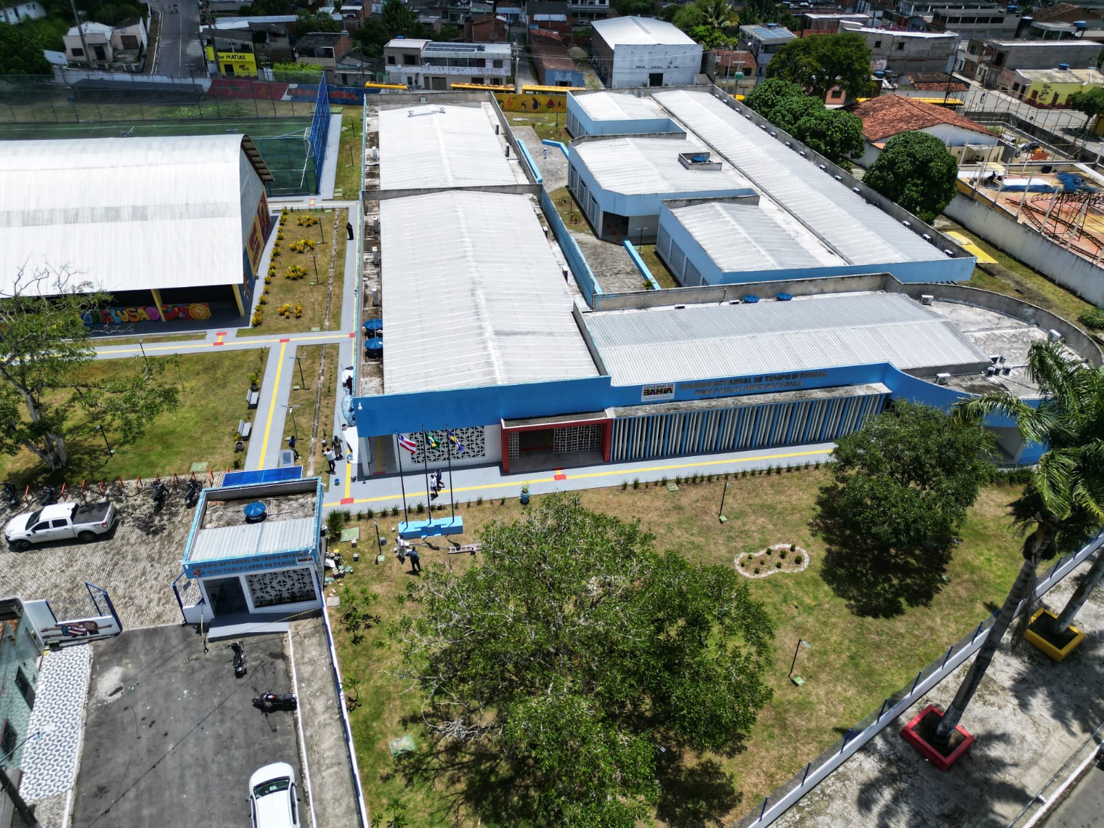 Mais de 350 estudantes matriculados na unidade contam com biblioteca, sala de informática, laboratórios, sala multifuncional, restaurante estudantil, teatro, quadra poliesportiva coberta, campo de futebol society e 15 banheiros. “A importância desse colégio é enorme, até por conta da qualidade da educação que esse colégio fornece para a gente. Então, na minha opinião, é muito mais do que essencial, até para nos valorizar. Nós que não temos condições de pagar um colégio particular”, comemorou o aluno do 2º ano, Vinicius Carvalho.