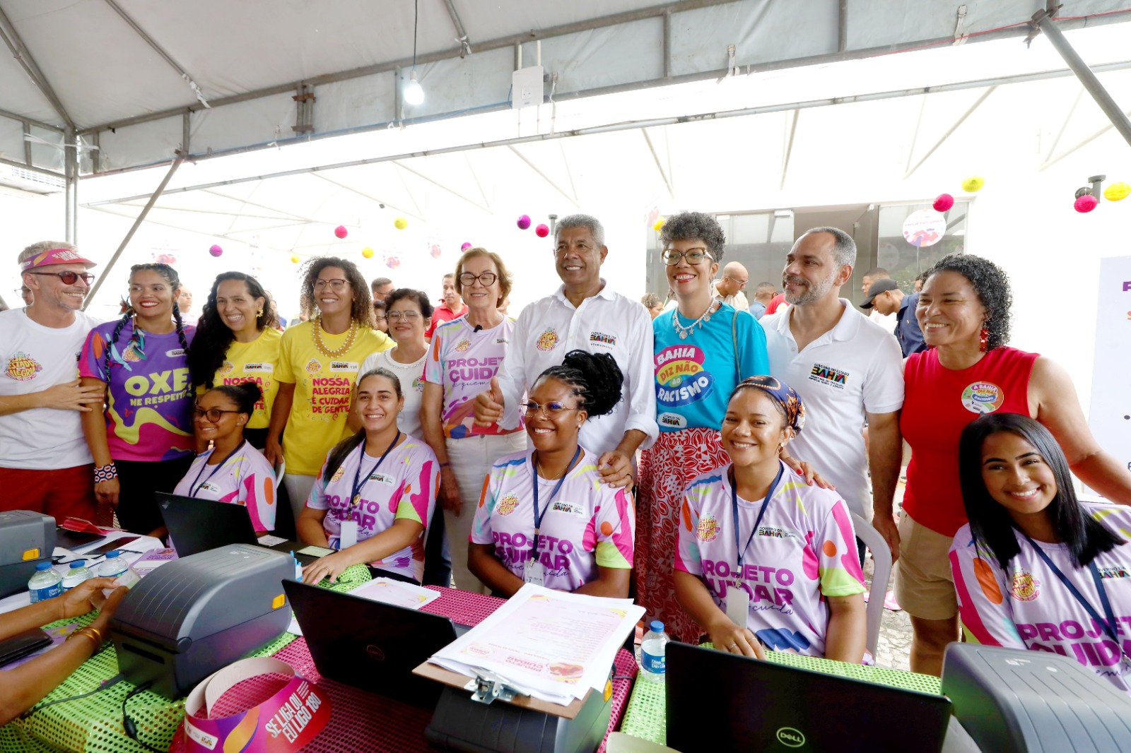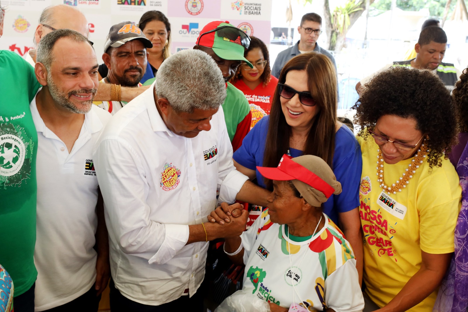 O governador Jerônimo Rodrigues visitou, na manhã deste sábado (14), o projeto Cuidar de Quem Cuida, iniciativa do Governo da Bahia voltada à assistência integral às mulheres que atuam no Carnaval de Salvador. A ação ocorre no Palácio da Aclamação e prioriza o atendimento a catadoras de materiais recicláveis. O projeto é executado pela Secretaria de Políticas para as Mulheres, em parceria com as Voluntárias Sociais da Bahia, a Secretaria do Trabalho, Emprego, Renda e Esporte e a Secretaria de Assistência e Desenvolvimento Social.