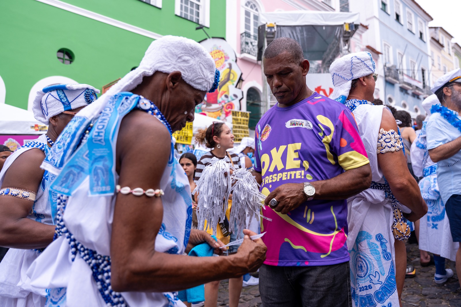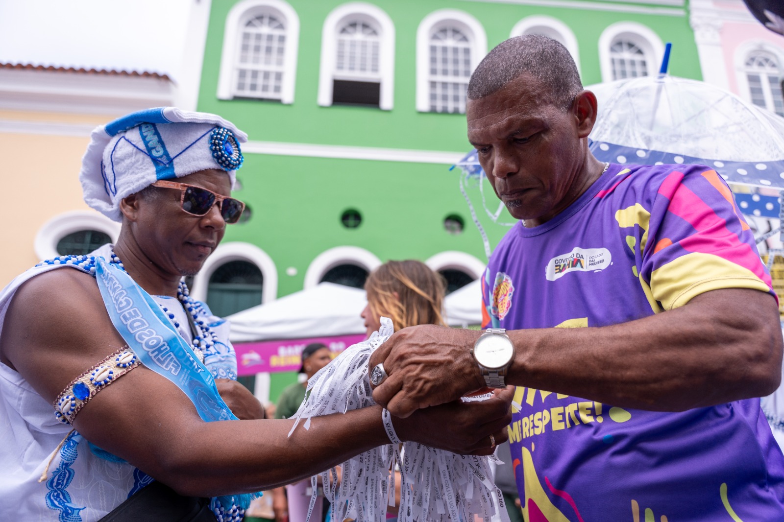 Durante o domingo (15) de Carnaval, no circuito Batatinha, a Secretaria de Políticas para as Mulheres (SPM) realizou mais uma edição da campanha Laço Branco, mobilizando integrantes dos Filhos de Gandhy na defesa da vida das mulheres. A iniciativa também compõe o Plantão Integrado de Direitos Humanos e conta com outras seis unidades espalhadas pelos demais circuitos do Carnaval.