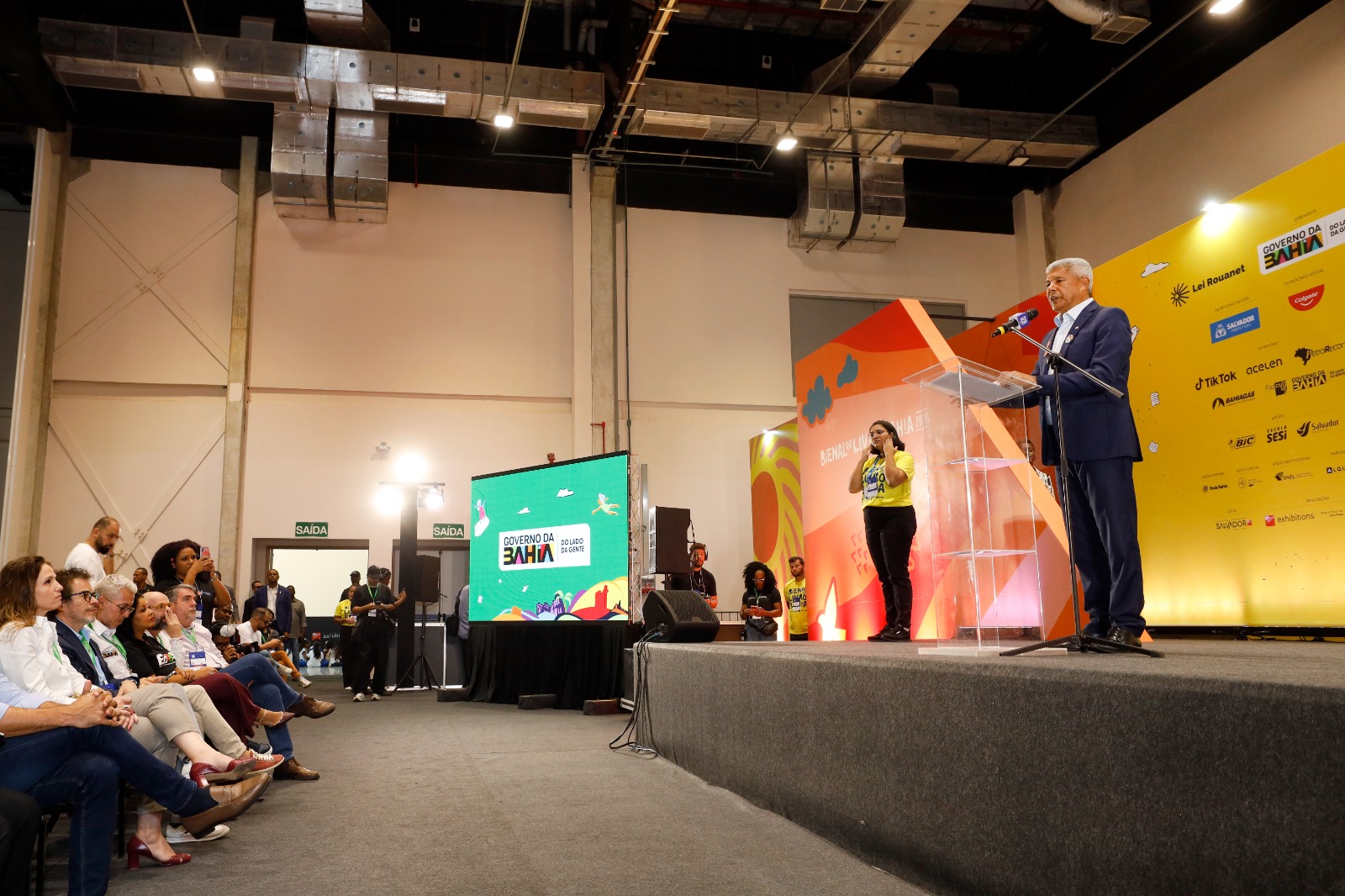 A abertura da edição contou com a presença do governador Jerônimo Rodrigues, que ressaltou a importância da Bienal para o fortalecimento da cultura e da educação no estado. O Governo da Bahia participa com um estande ocupado pela rede estadual de ensino, com apresentações literárias e circulação de milhares de estudantes, reforçando políticas públicas voltadas ao livro e à leitura.