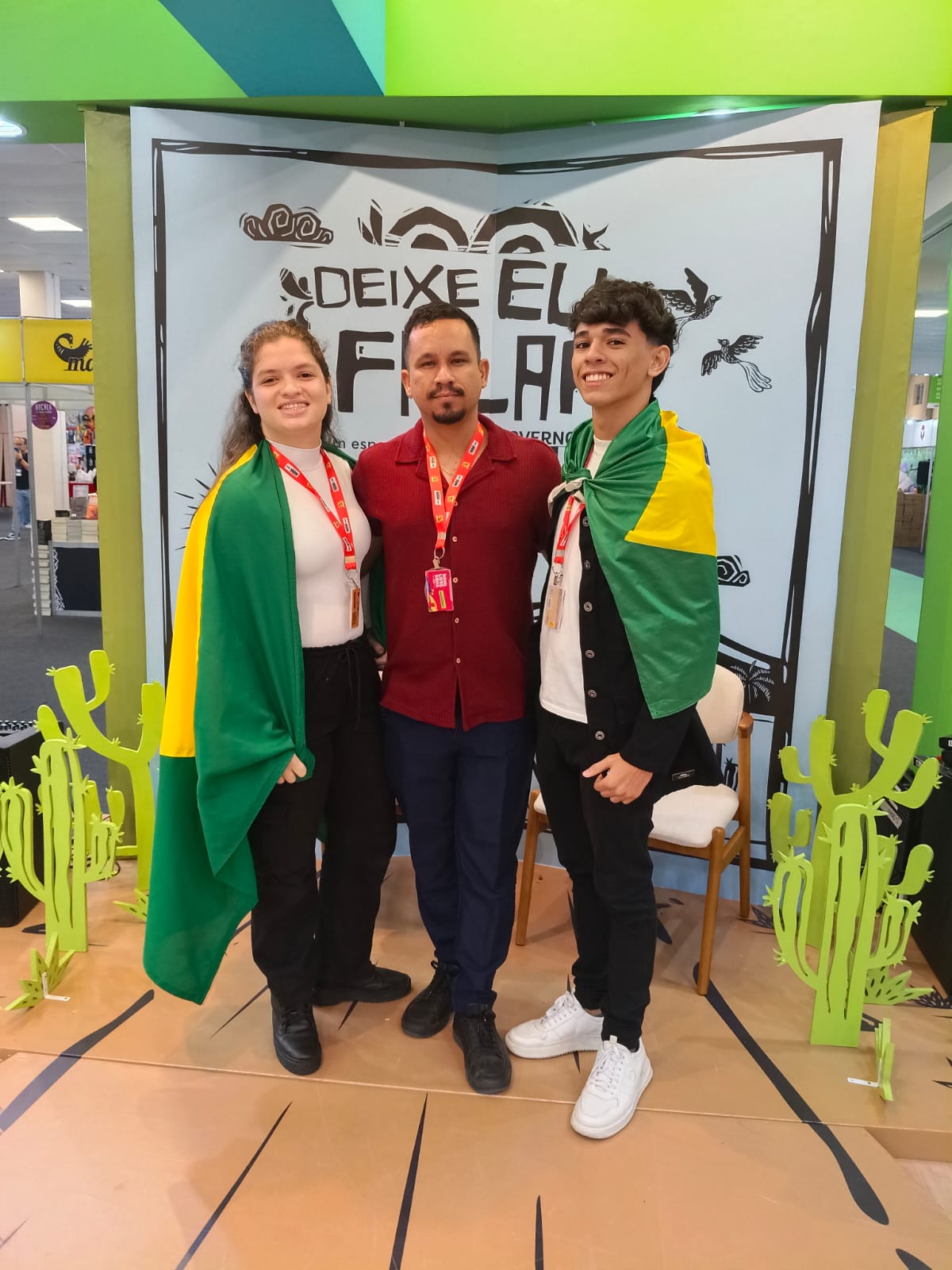 Para o professor Eli da Silva, do Colégio Estadual de Ibirapitanga, a literatura é um elemento transformador. Nesta sexta-feira (17), o professor acompanhou os estudantes Lara Souza e Noé Oliveira, no Espaço Deixa Eu Falar, no estande do Governo do Estado, onde apresentaram a obra “Desordem e Retrocesso”, desenvolvida por meio do Tempo de Arte Literária (TAL), um dos projetos estruturantes presentes em todas as unidades de ensino da rede estadual da Bahia.