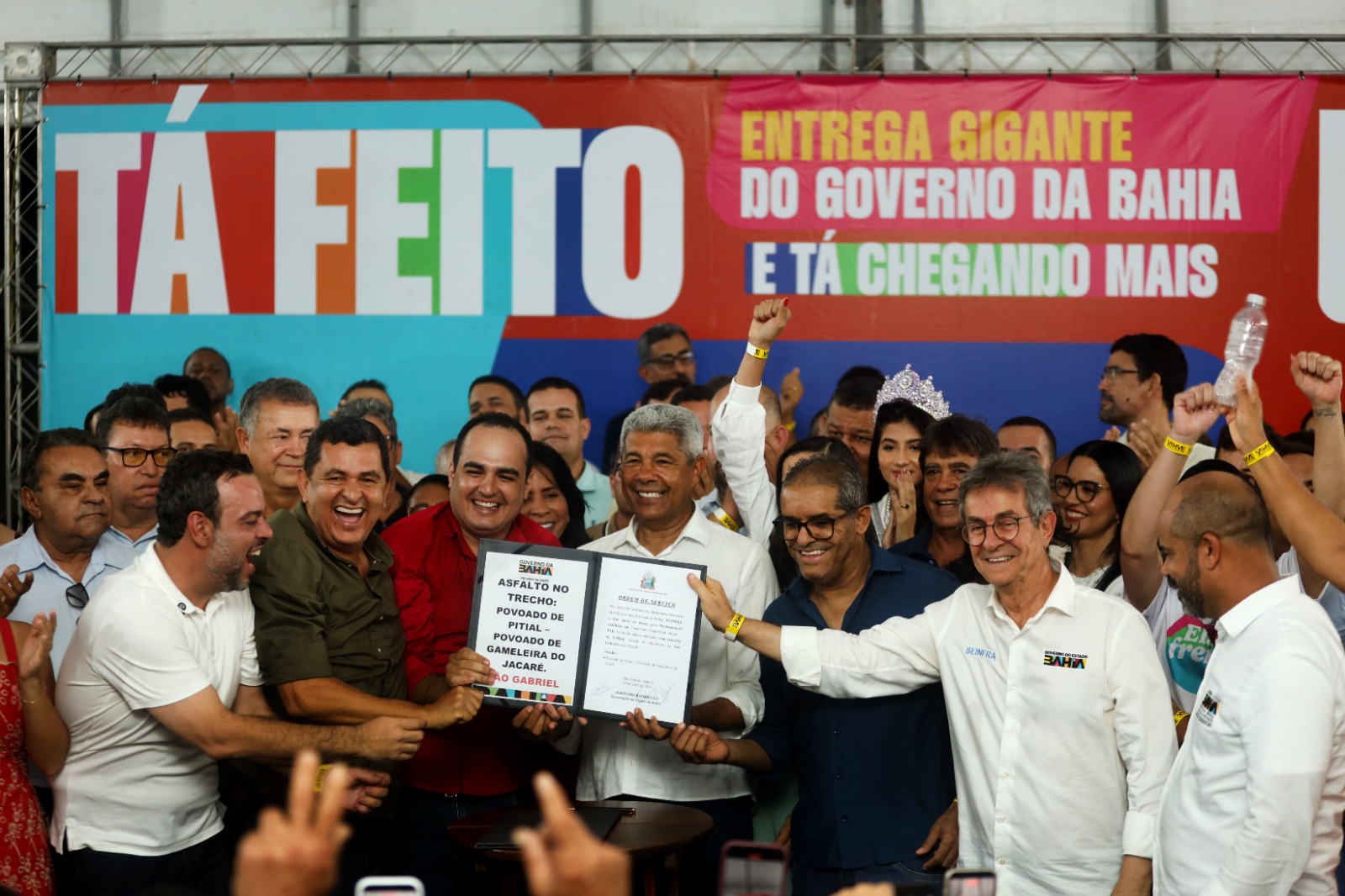 Encerrando a agenda institucional neste domingo (19) o governador Jerônimo Rodrigues visitou o município de São Gabriel, no Centro-Norte baiano, e fez entregas para o fortalecimento da infraestrutura, do abastecimento de água e de políticas sociais. O município foi o quarto do dia a receber a visita do governador Jerônimo Rodrigues e foi contemplado com a assinatura da ordem de serviço para a pavimentação da BA-435, no trecho que liga o povoado de Pitial ao povoado de Gameleira do Jacaré.
