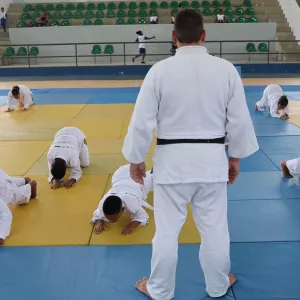 Crianças têm primeira experiência com o judô no Ginásio de Cajazeiras durante Caravana do Esporte Febaju