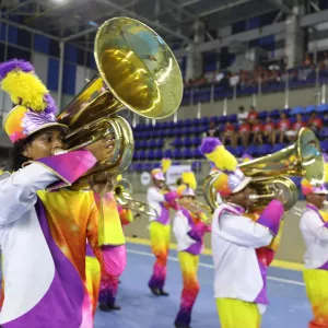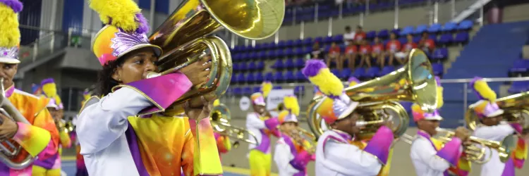 Estudantes que integram as fanfarras escolares ensaiam para o Desfile Cívico de 7 de Setembro