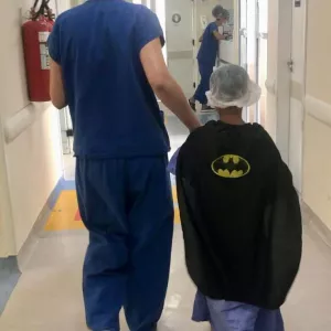 Com capa de super-heróis, pequenos pacientes entram "em ação" rumo à cirurgia no HRC